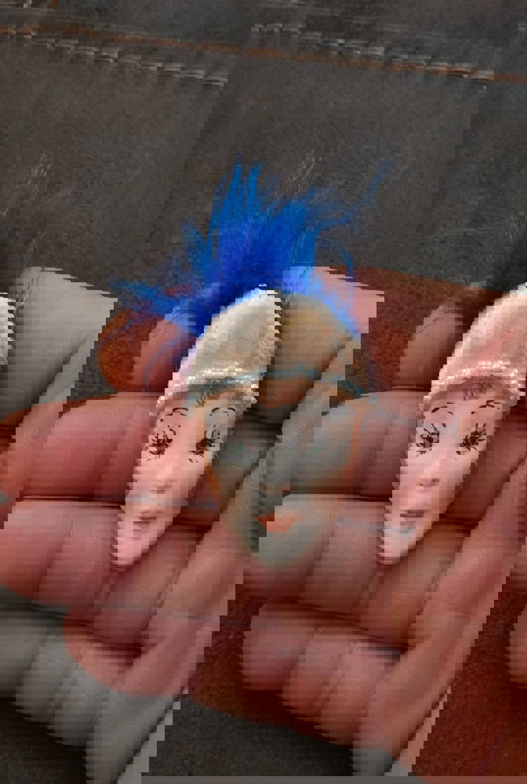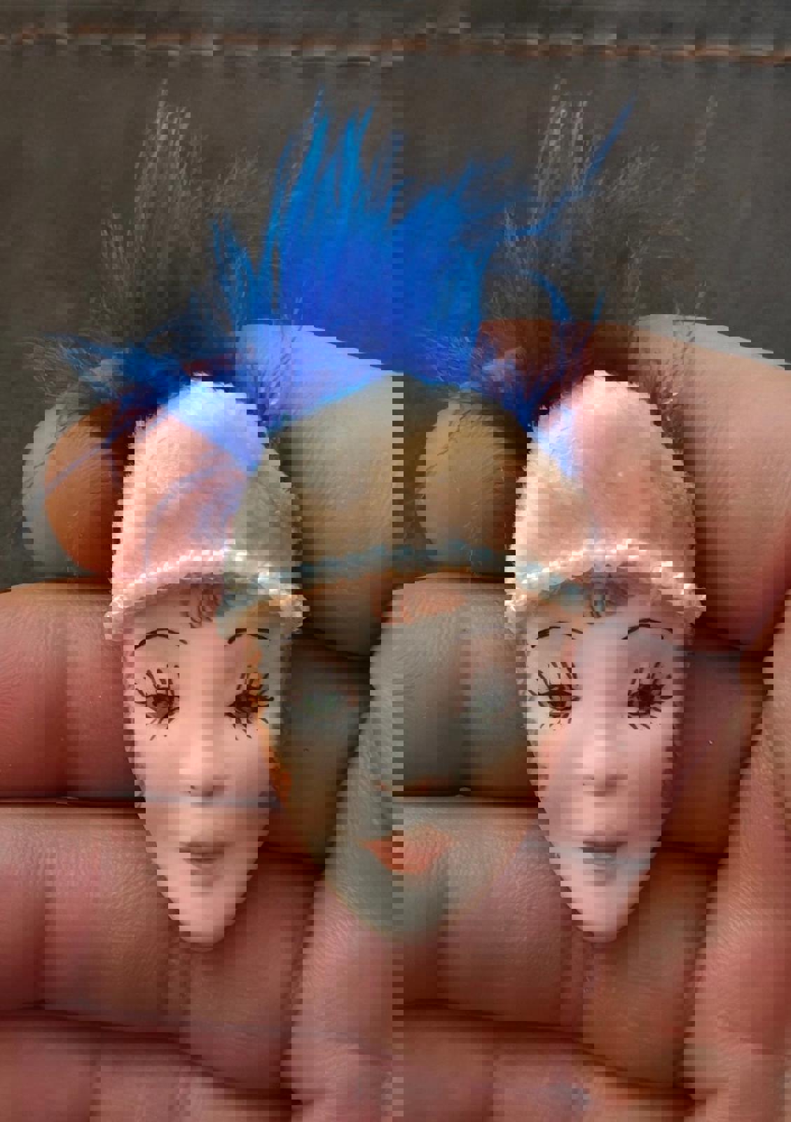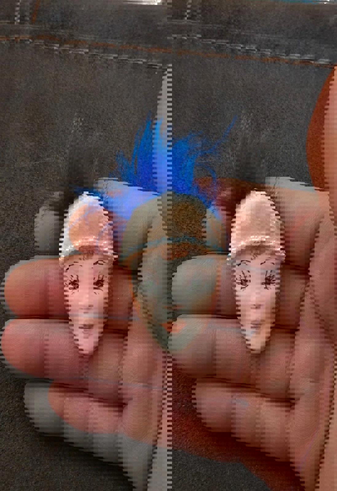 1900's Chalkware Doll Face Hand-Painted Feather Adorned Pin Brooch
