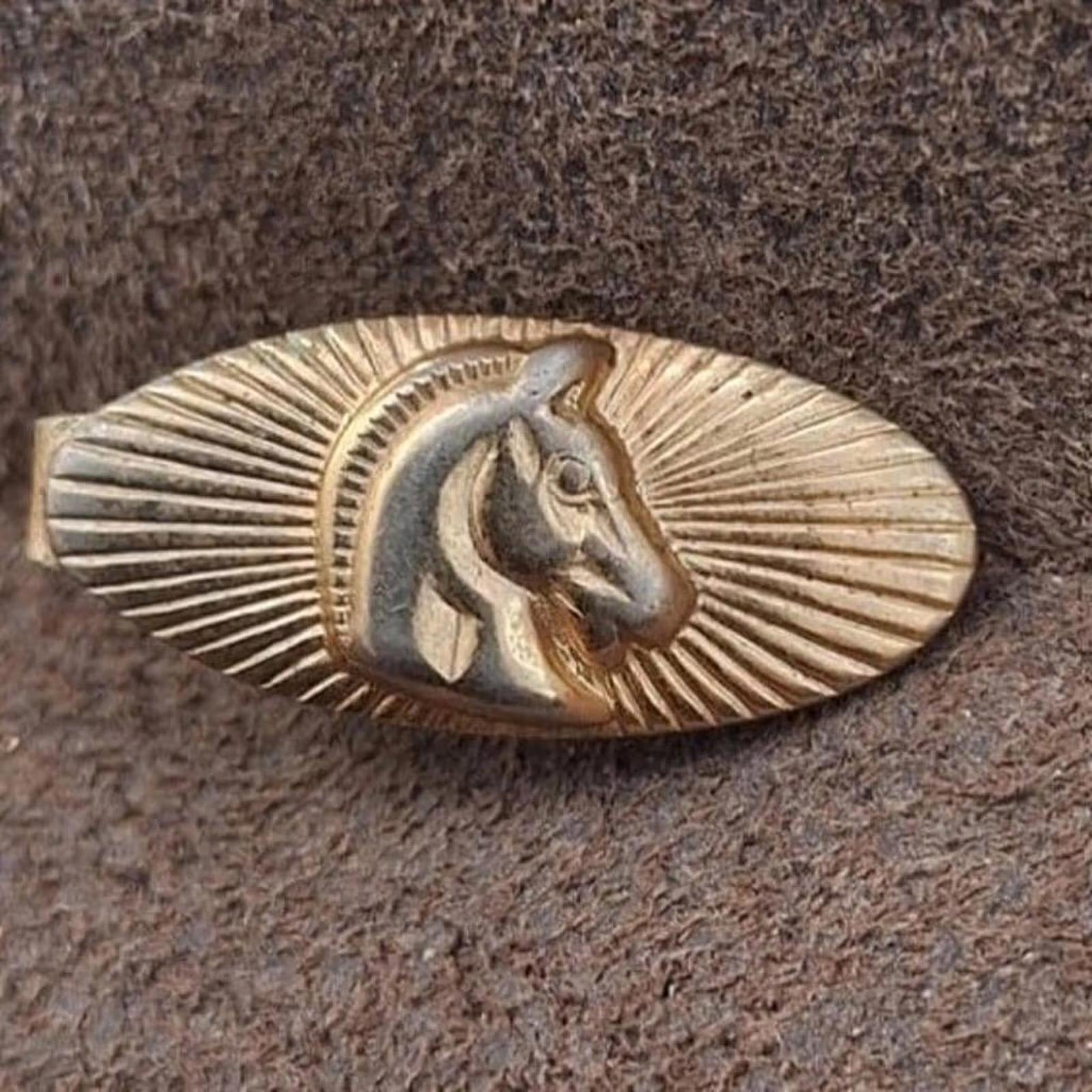 1940s Horse Profile Head Gold Tone Oval Tie Bar Clip