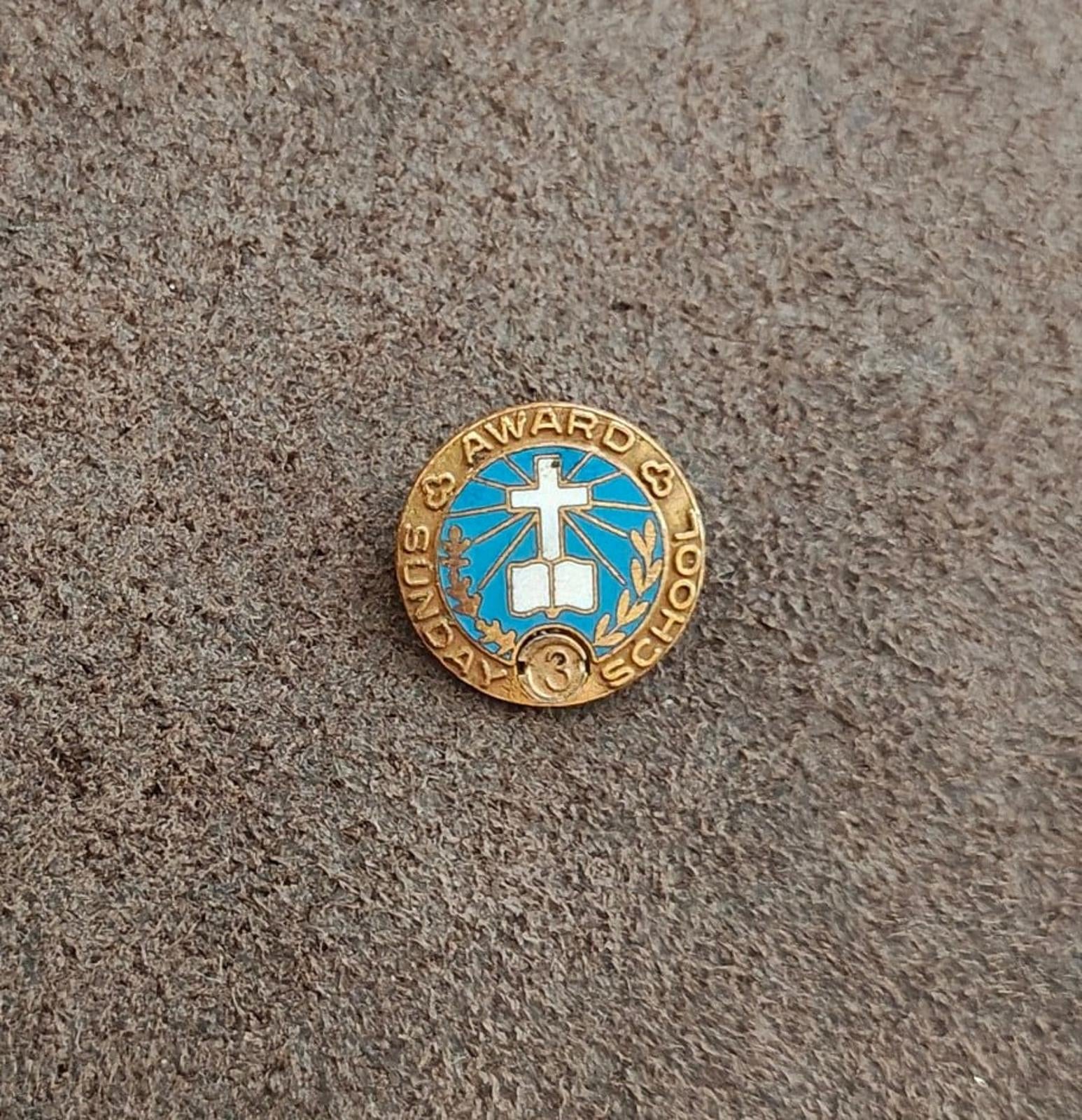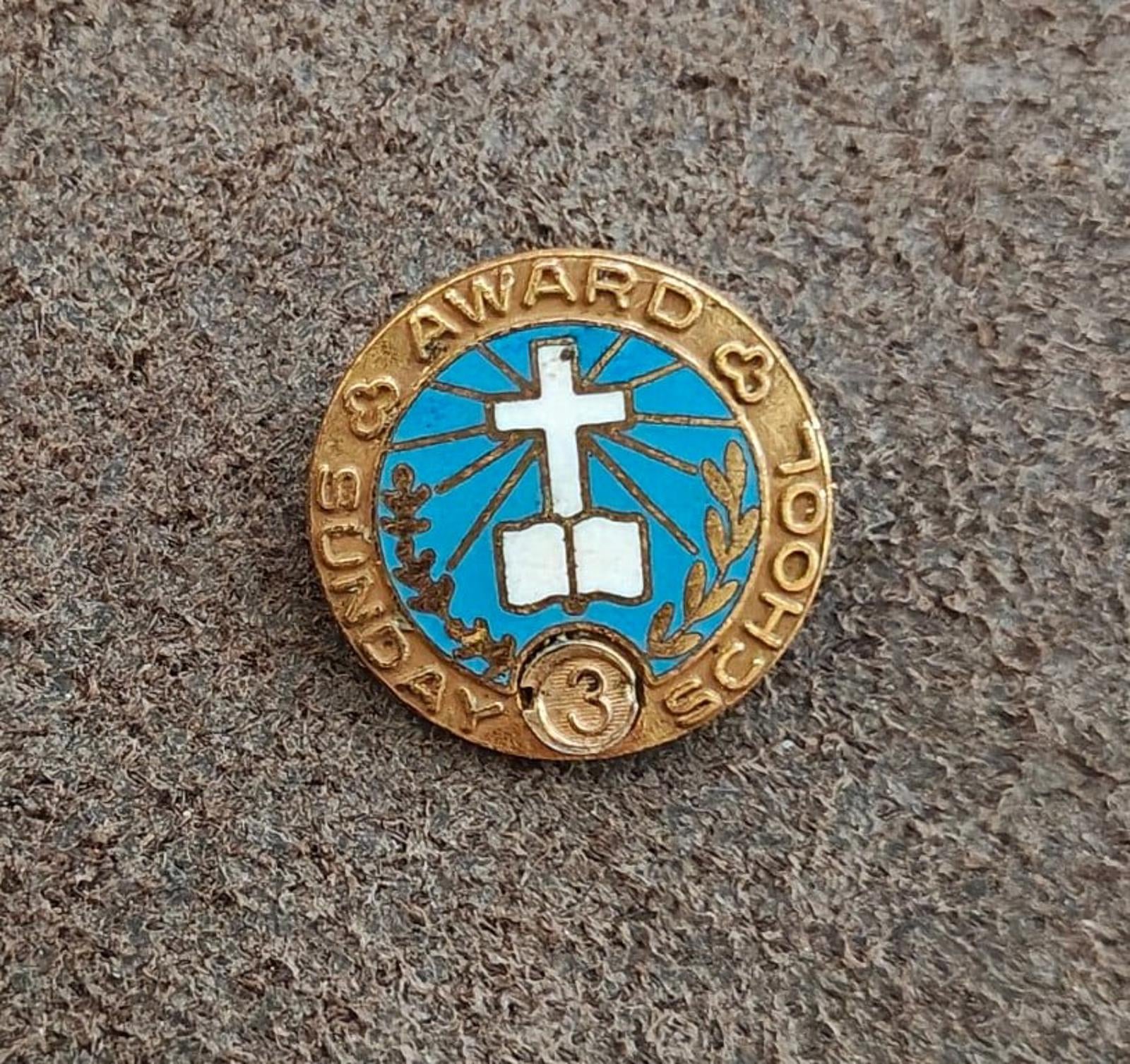 This Nice Vintage 1950's/60's Vintage Sunday School Attendance Award Gold Tone Enamel Pin is in Great Condition.