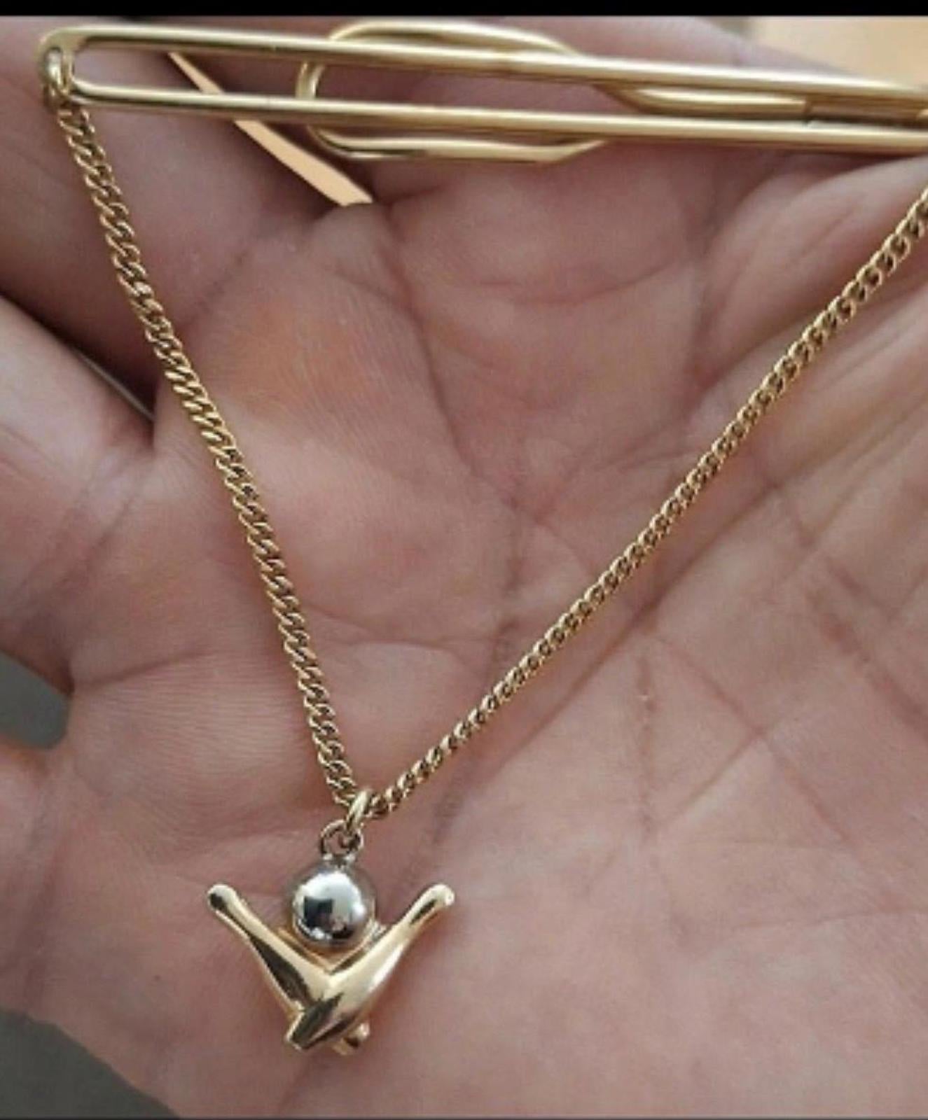 This Cool Vintage Swank Bowling Ball & Pins Gold Tone Tie Clip Bar with chain is in Great Condition.