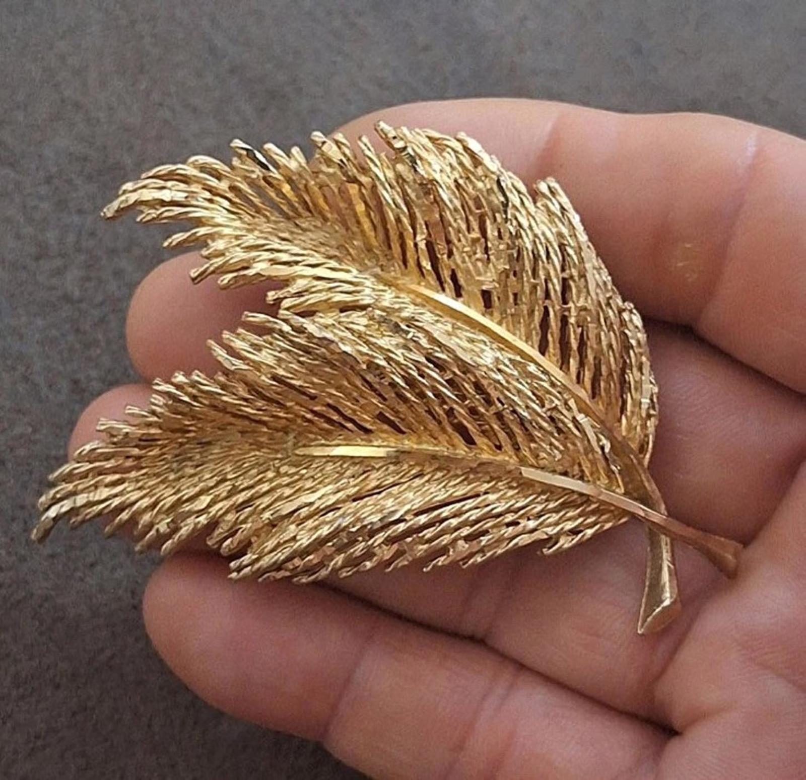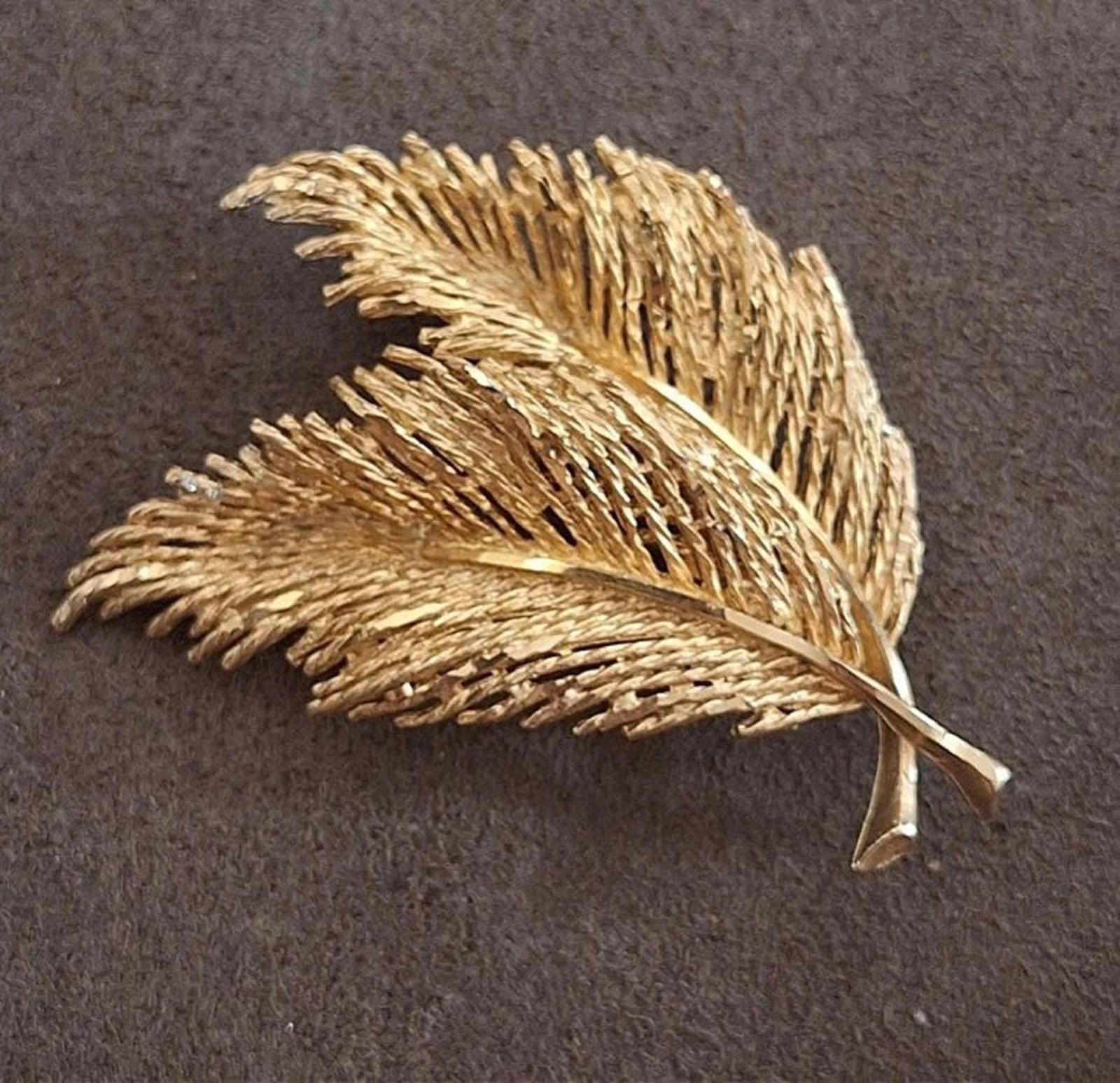 This Beautiful Vintage 1950s/60s Gold Tone Two Feather/Leaf Pin Brooch is in Excellent Condition