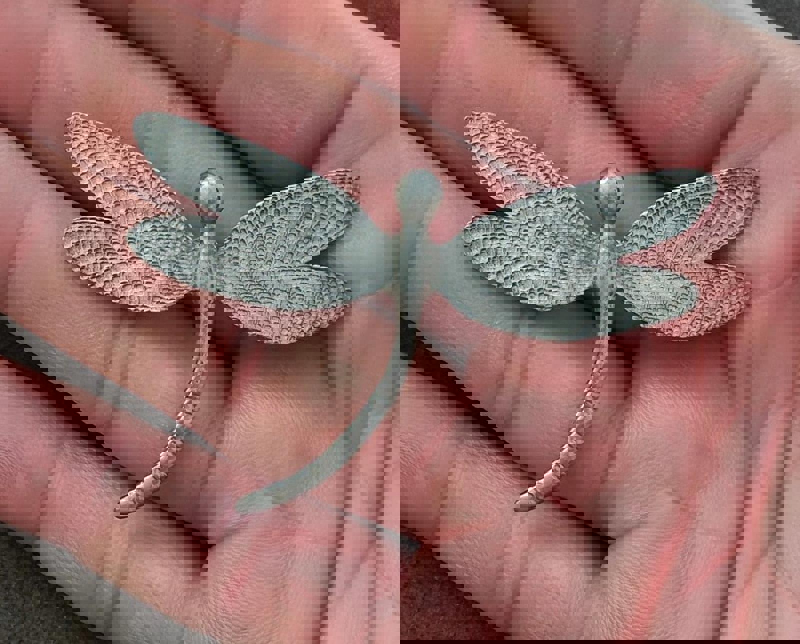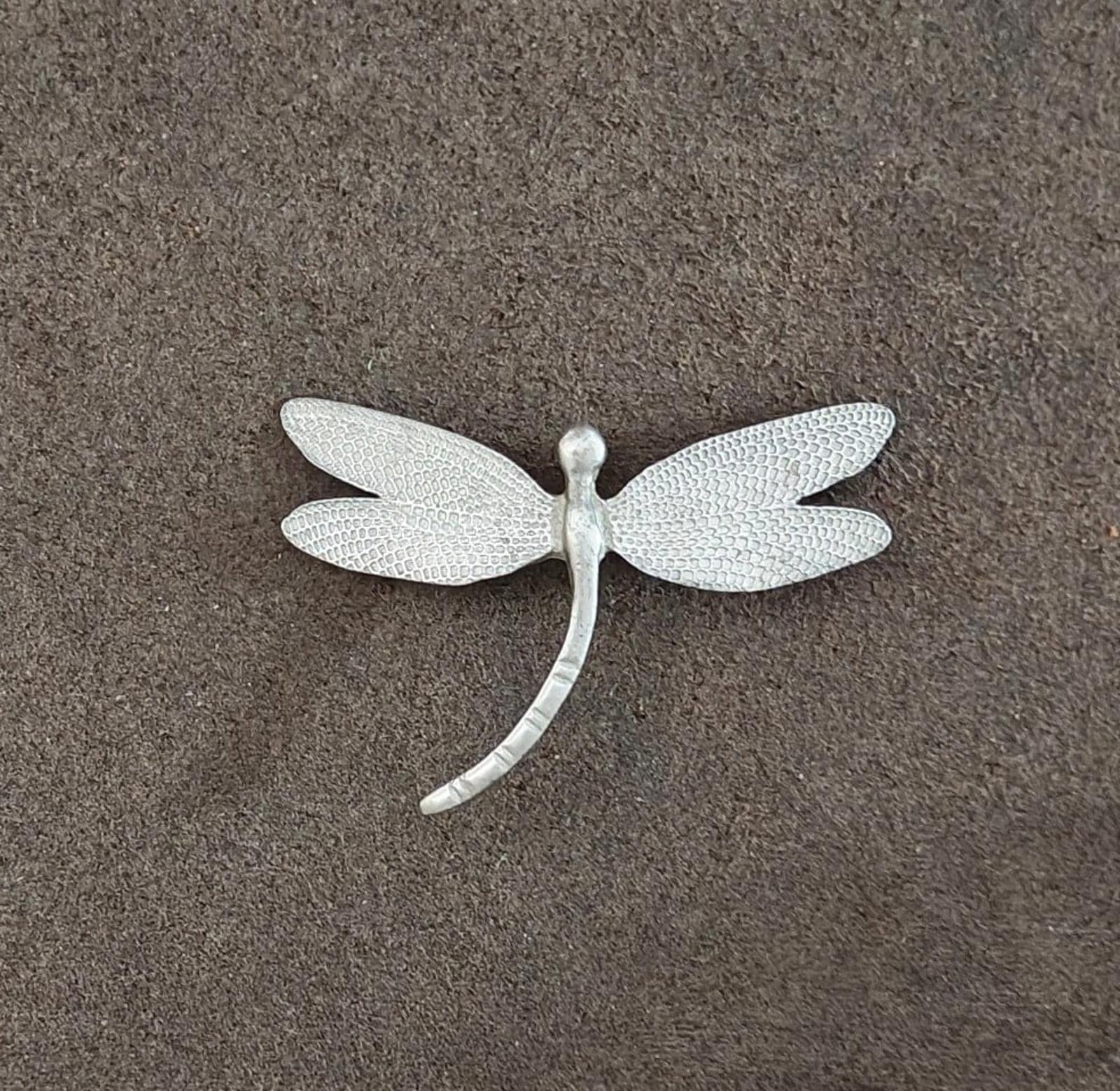 It measures approximately 2.25″ W X 1.50″ tall. It is made in the USA. This lovely Lovell dragonfly brooch was designed in the 1960's. It was a popular piece of jewelry created by the Lovell Art Gallery in the 1960's and 1970's. The brooch is made of fine pewter and features a detailed dragonfly design with textured wings.