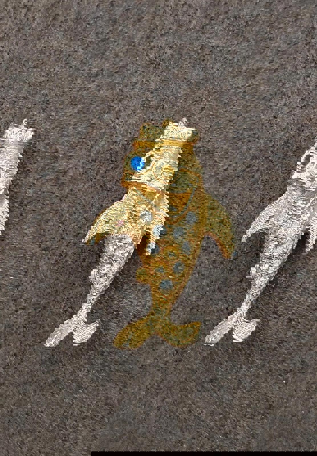 This Cool Vintage 1960's Charlie the Tuna StarKist Mascot Collectible Advertising Pin Brooch is in Good Condition. Signed SKF (StarKist Foods). Missing a couple stones but still looks great.