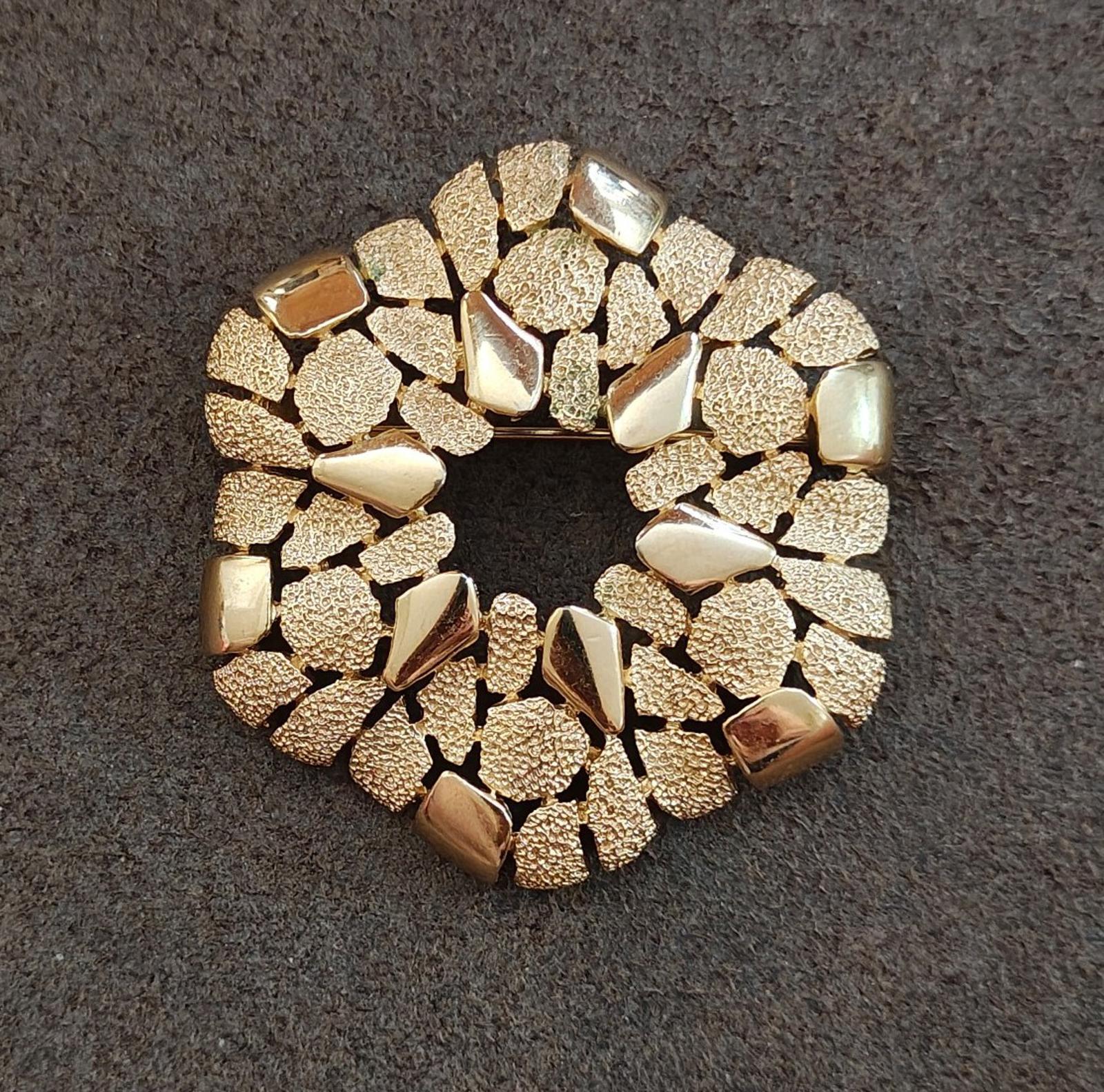 1960's Crown Trifari Cobblestone Wreath Gold Tone Textured Brooch