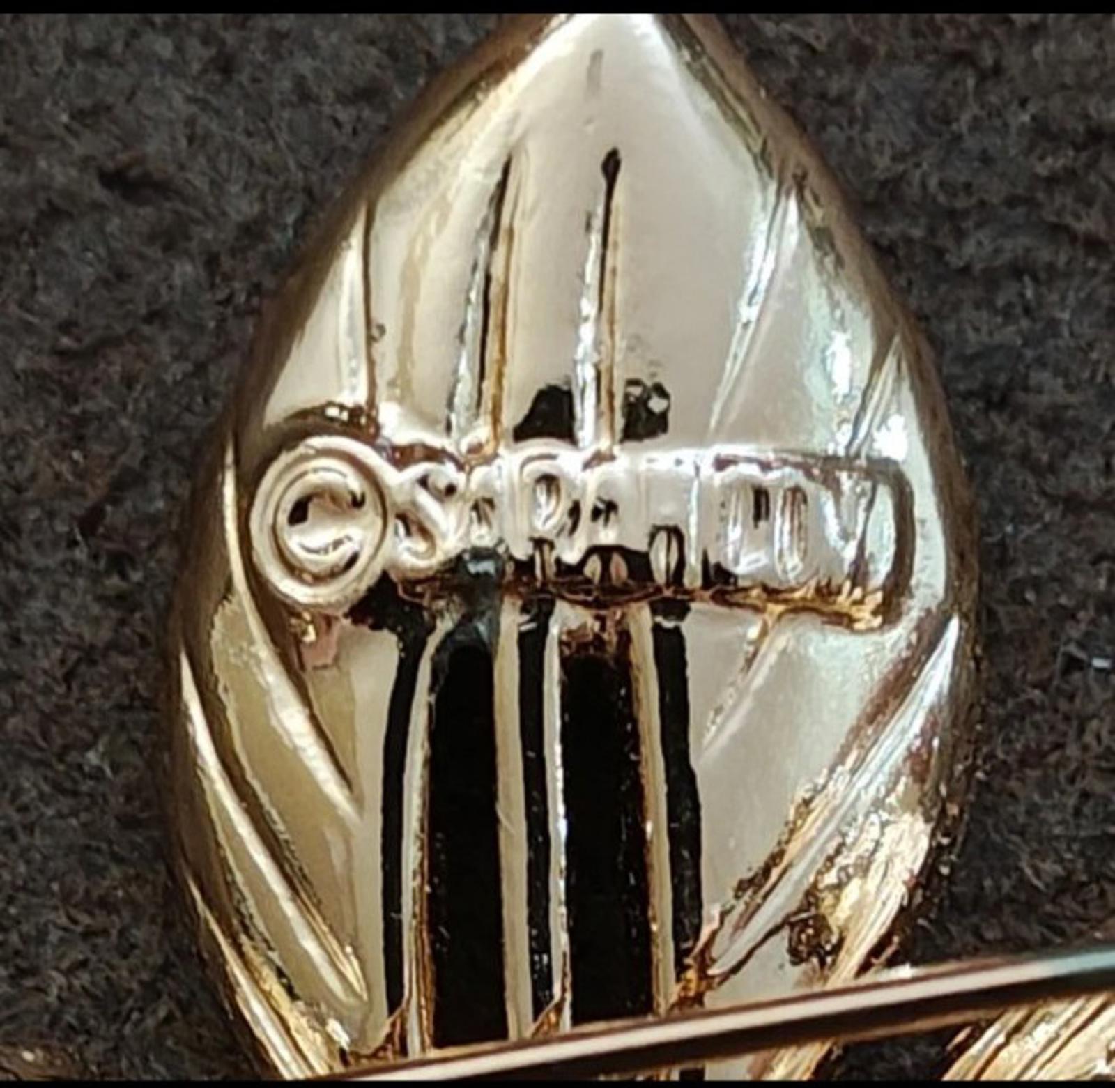 This lovely brooch features a leaf design in gold tone. The petals are textured in the middle, and outlined in a polished gold. The leaves are curved at different angles to mimic a real leaf. This brooch is simple but bold.