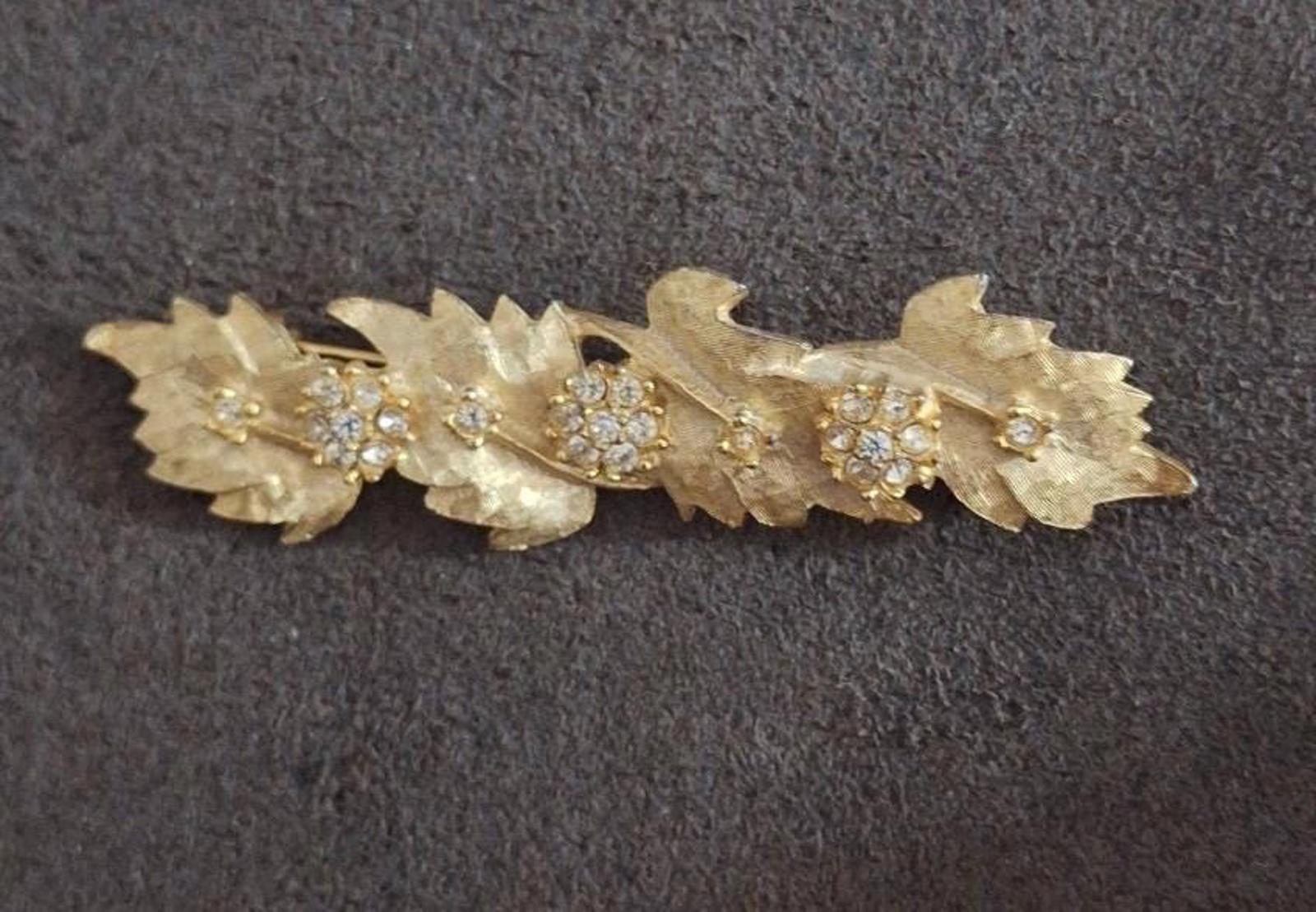 This Beautiful Vintage 1970’s Beautiful Sparkly Ice Rhinestones Flower Leaf Pin Brooch is in Excellent