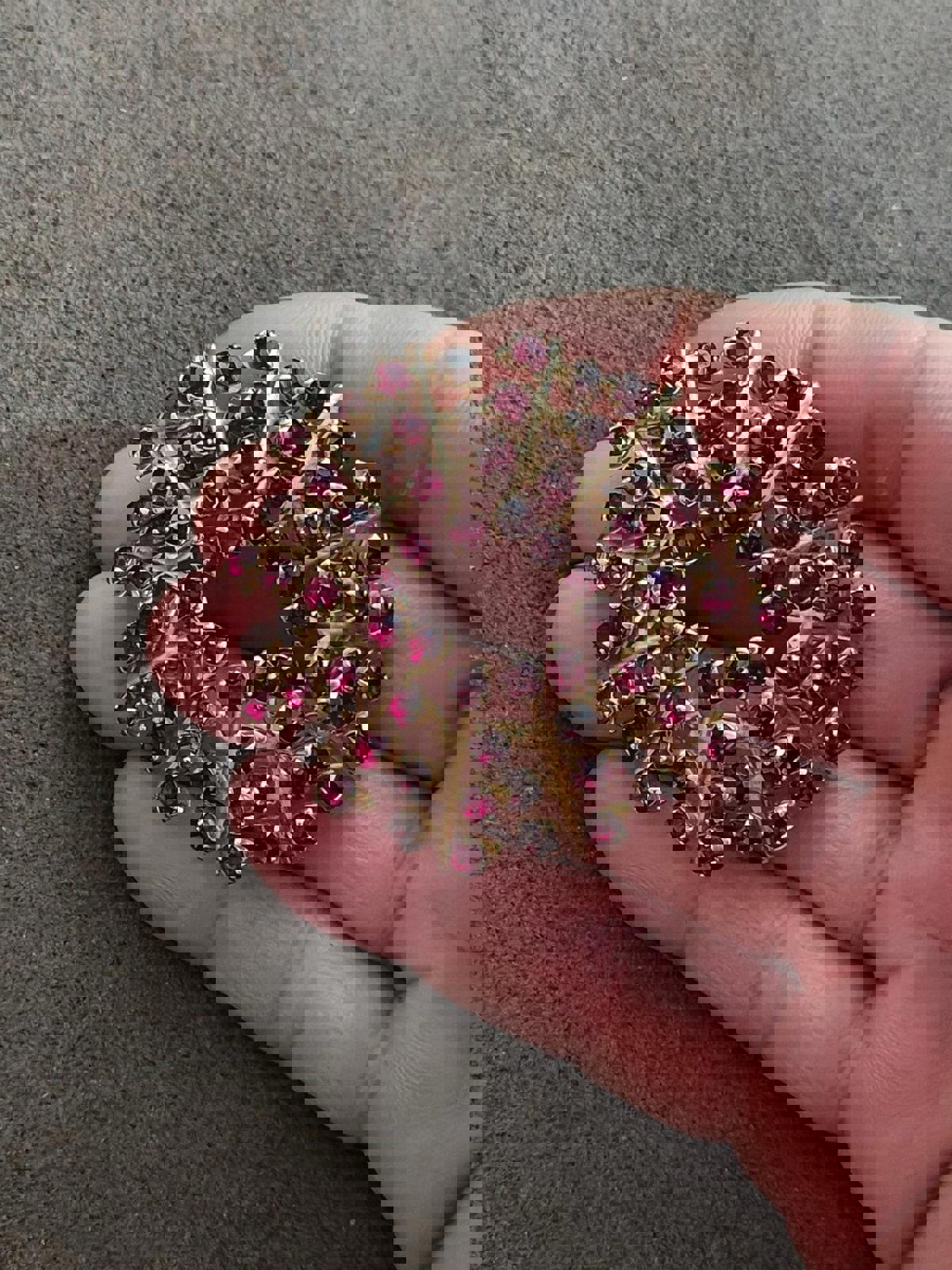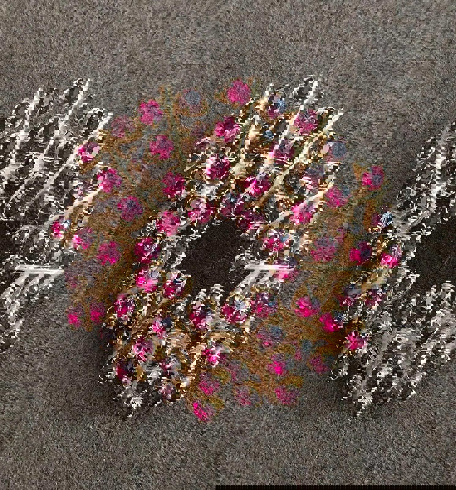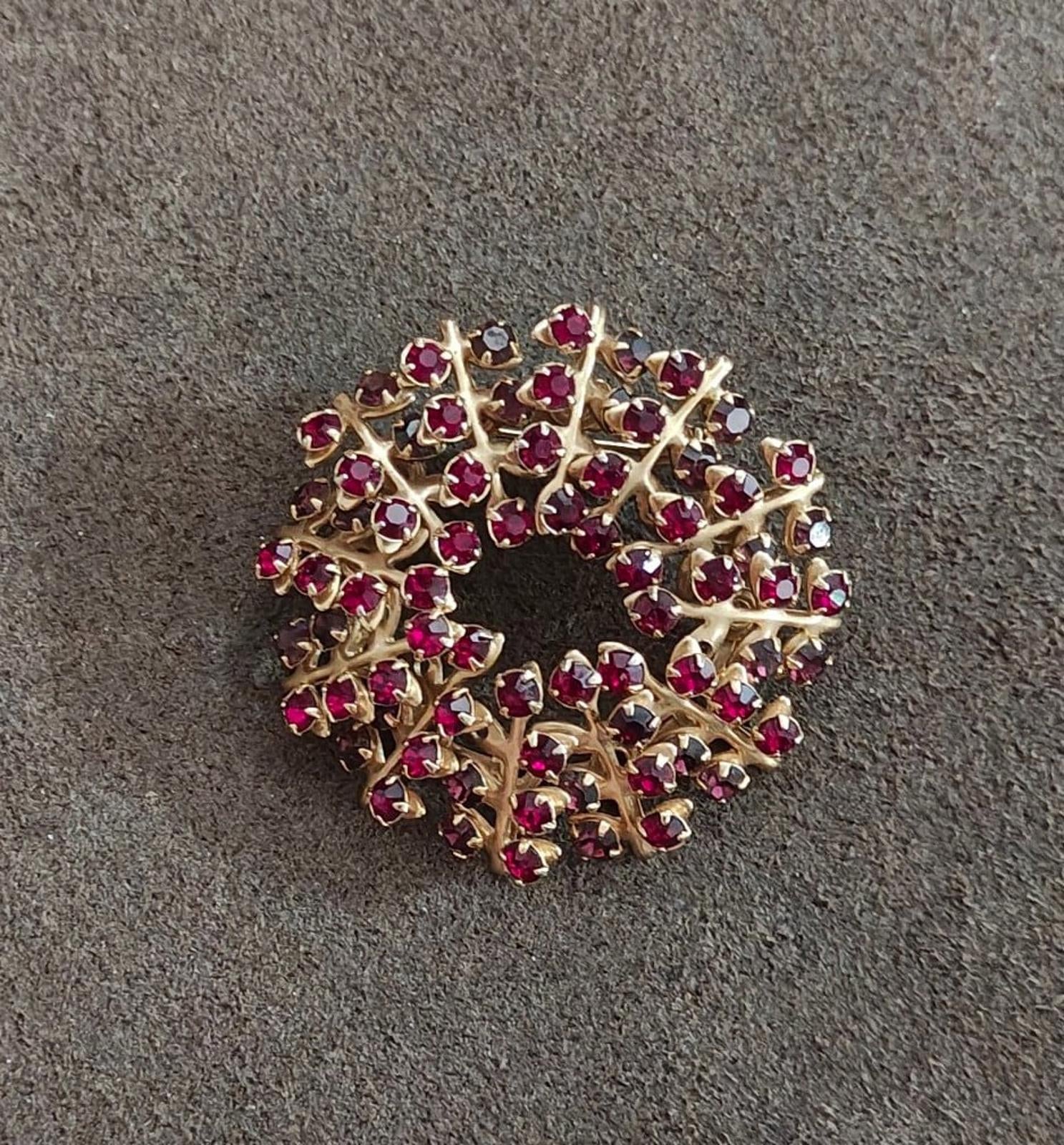 1970's Gorgeous Maroon Color Rhinestones Brooch Pin