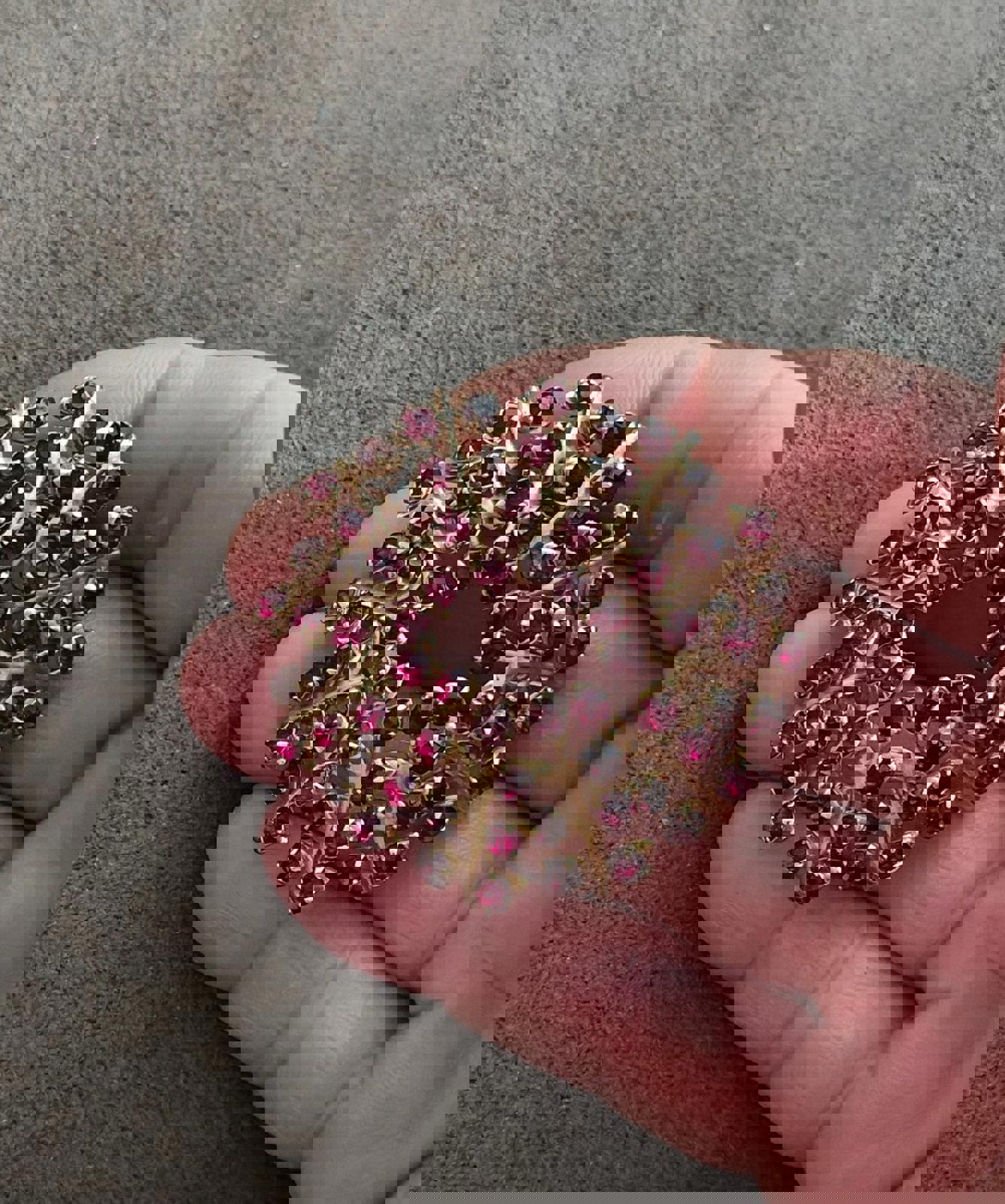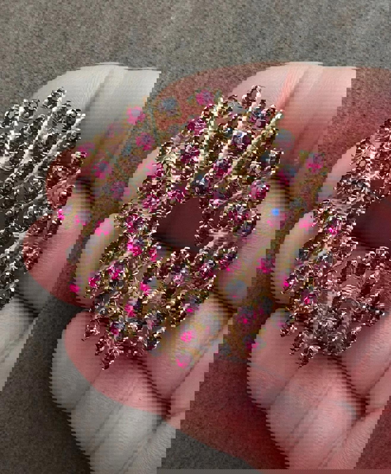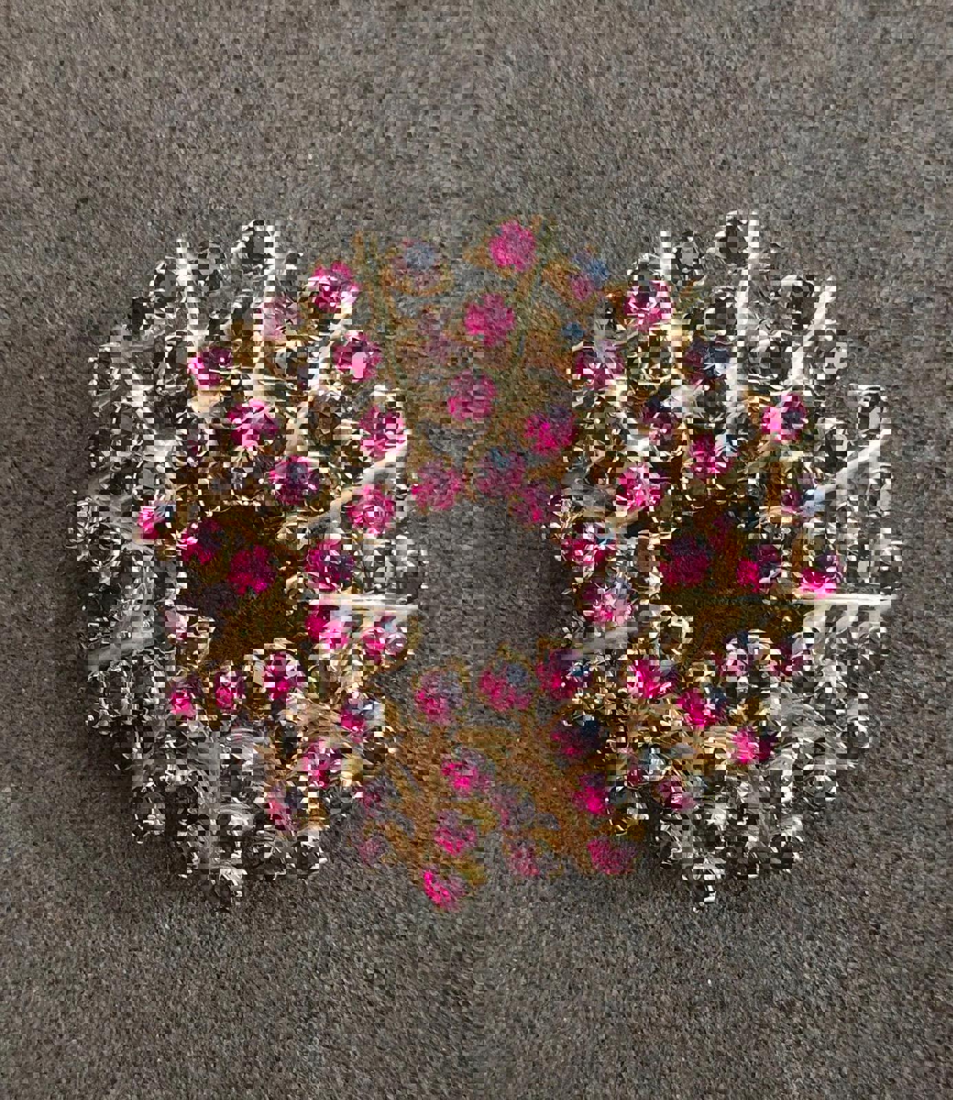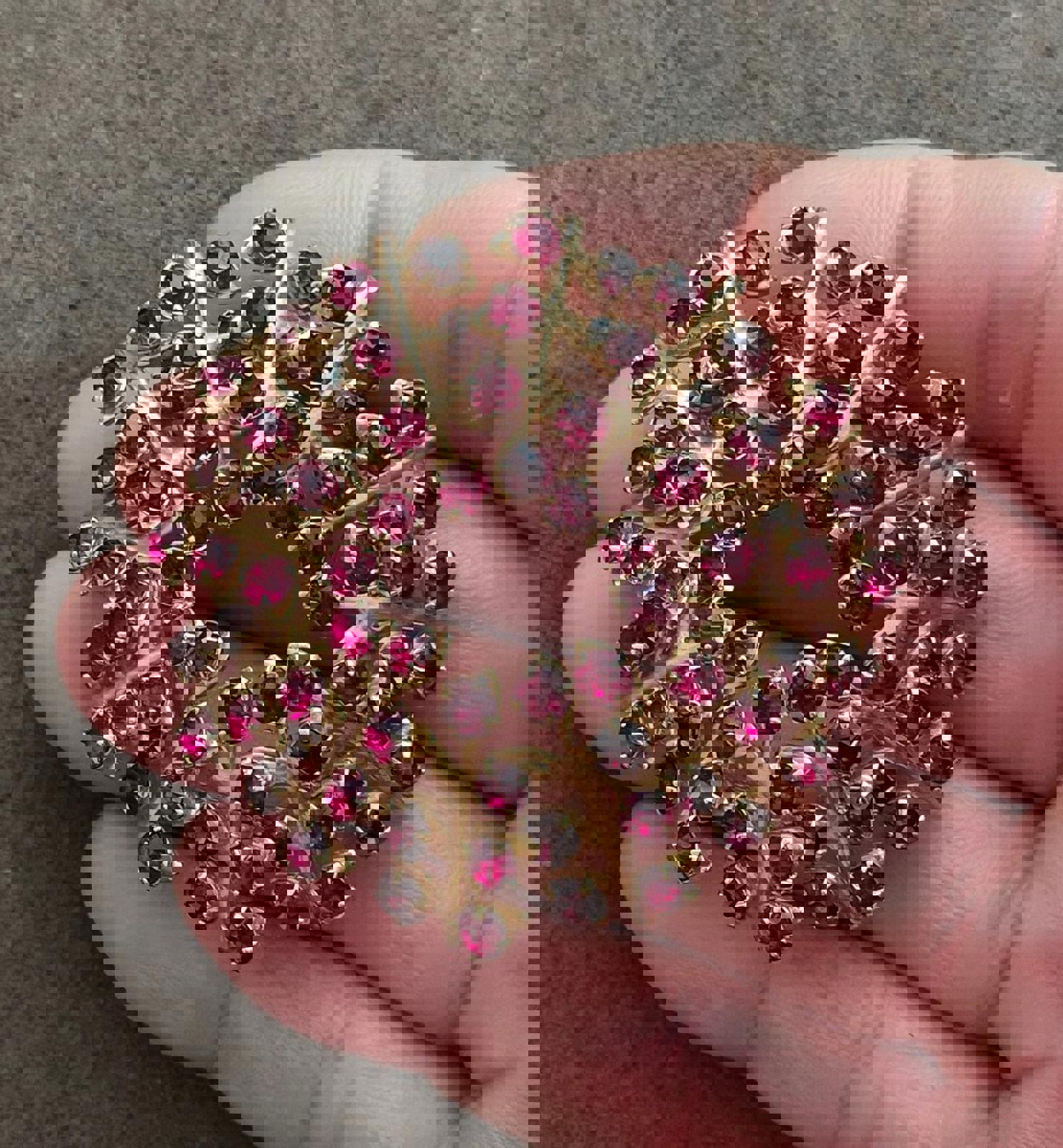 1970's Gorgeous Maroon Color Rhinestones Brooch Pin