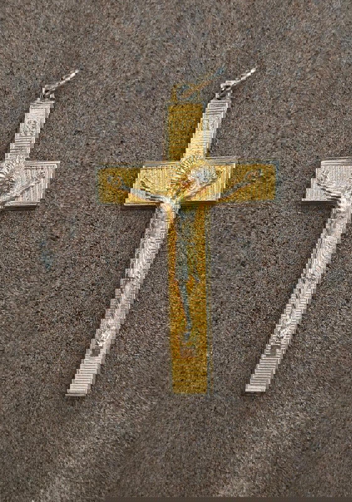 1970's INRI Cross Crucifix Gold Tone Pendant
