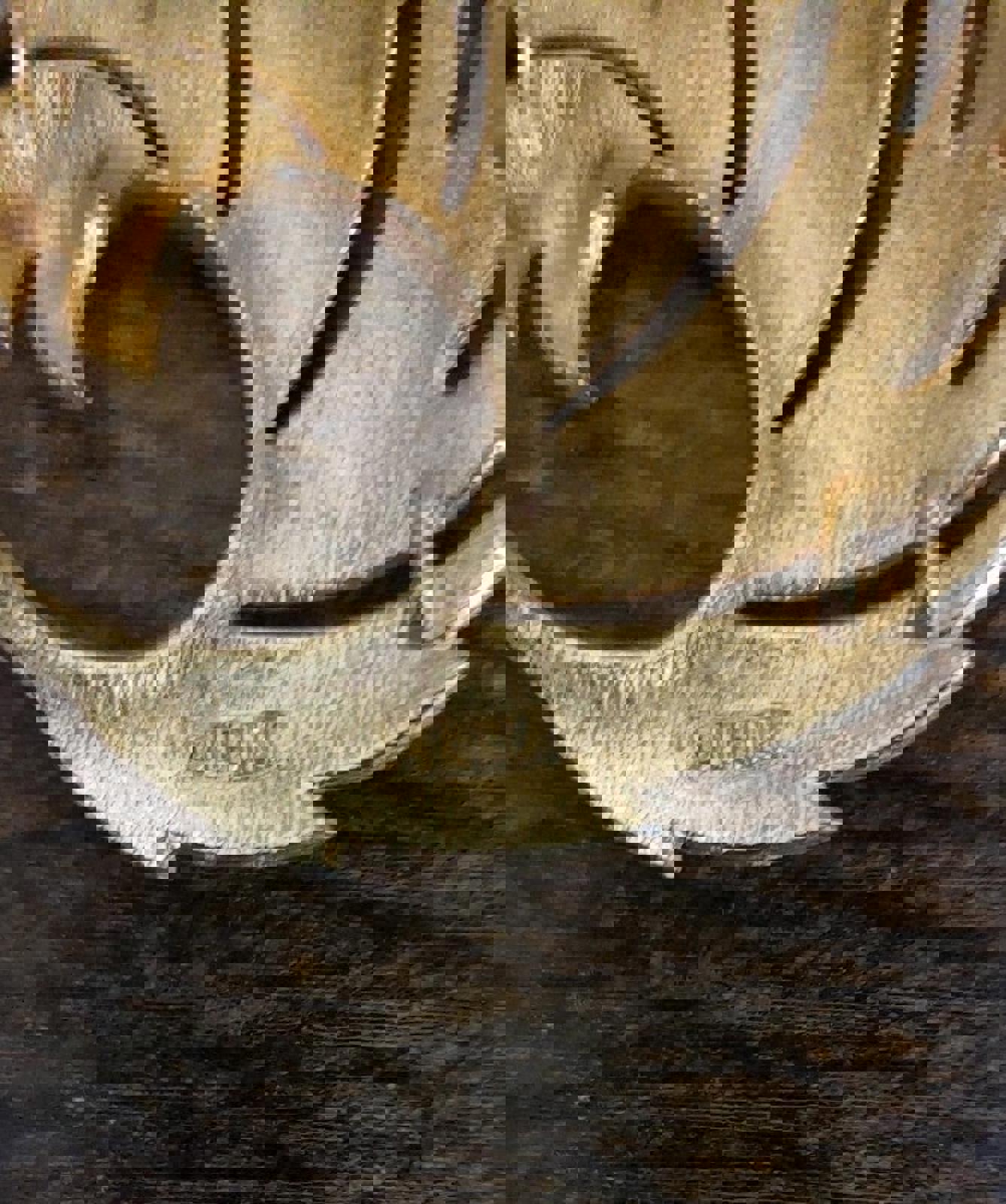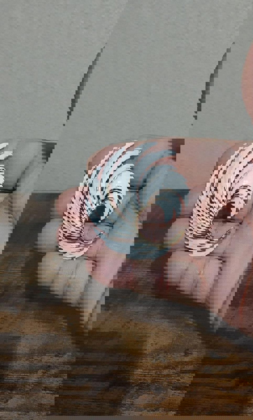 It measures approximately 2 1/4". Nicely textured & detailed. It is in the shape of a half open swirl or feather.