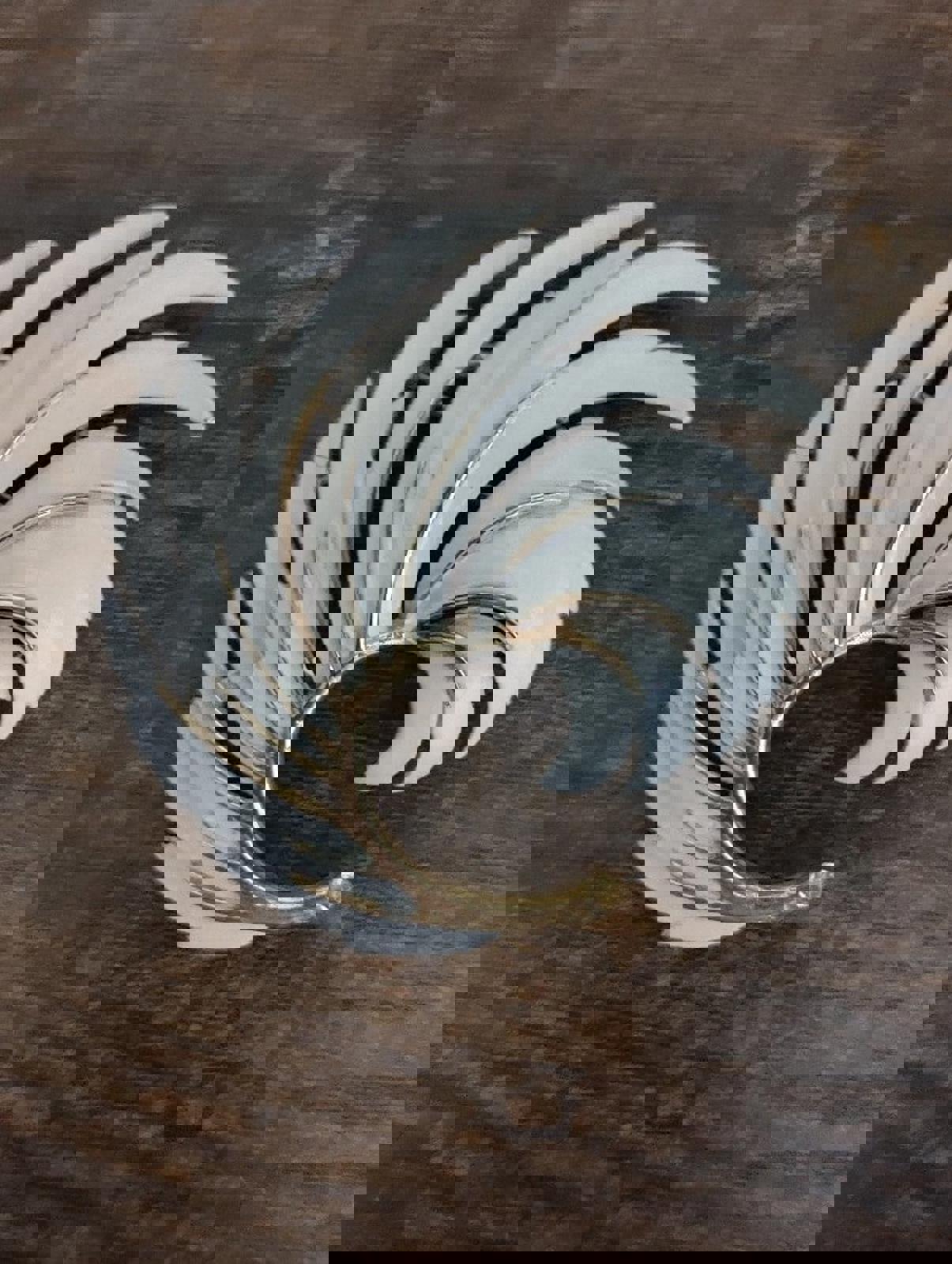1970's Signed Lisner White Enamel Gold Tone Feather Brooch