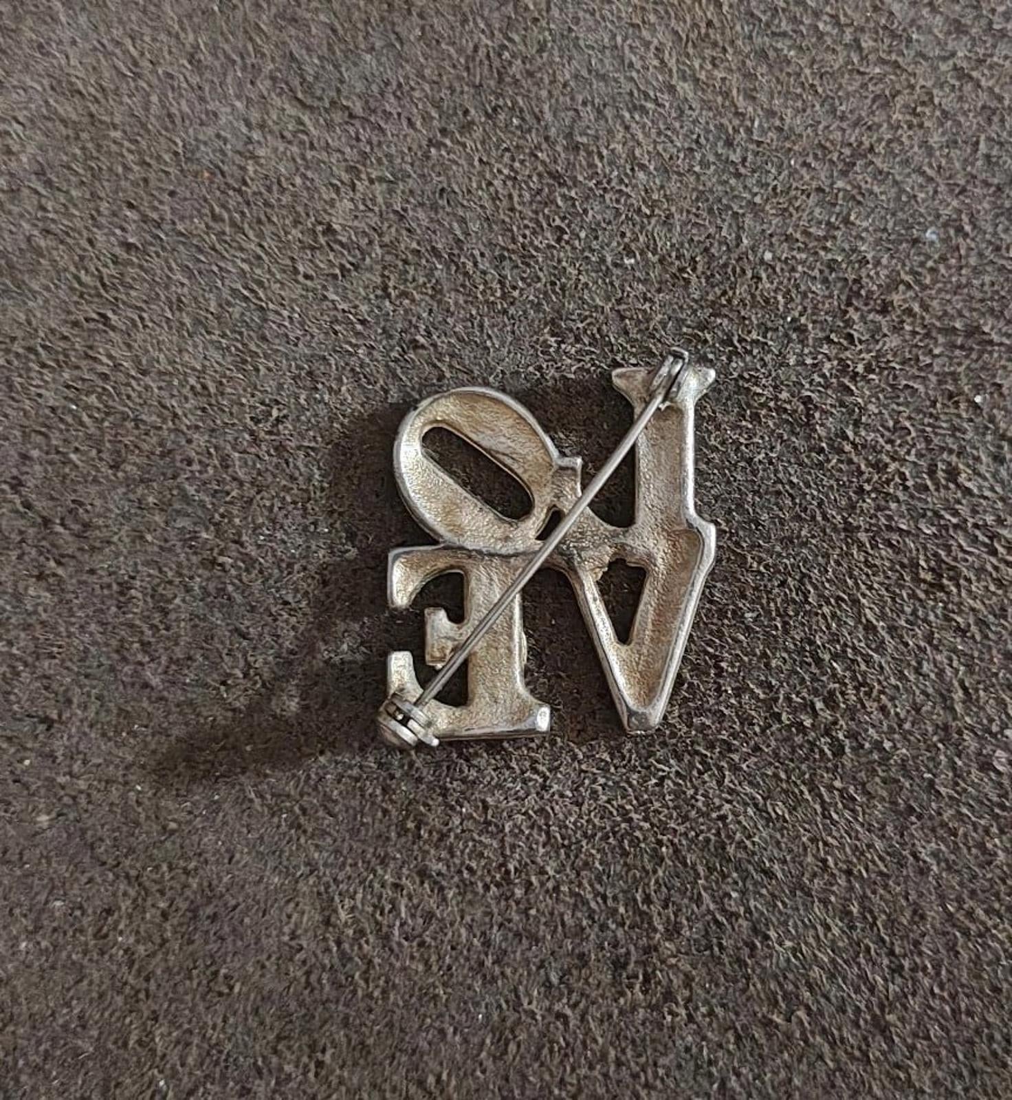 This Pretty Vintage 1970's Silver Tone Love Pin Brooch is in Good Condition. It measures approximately 1 1/4"'x 1 1/4".