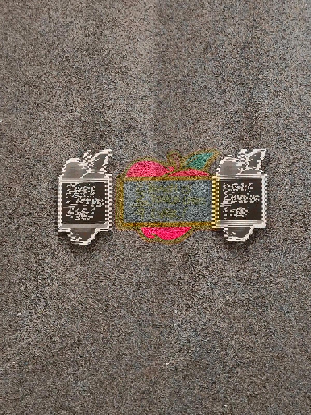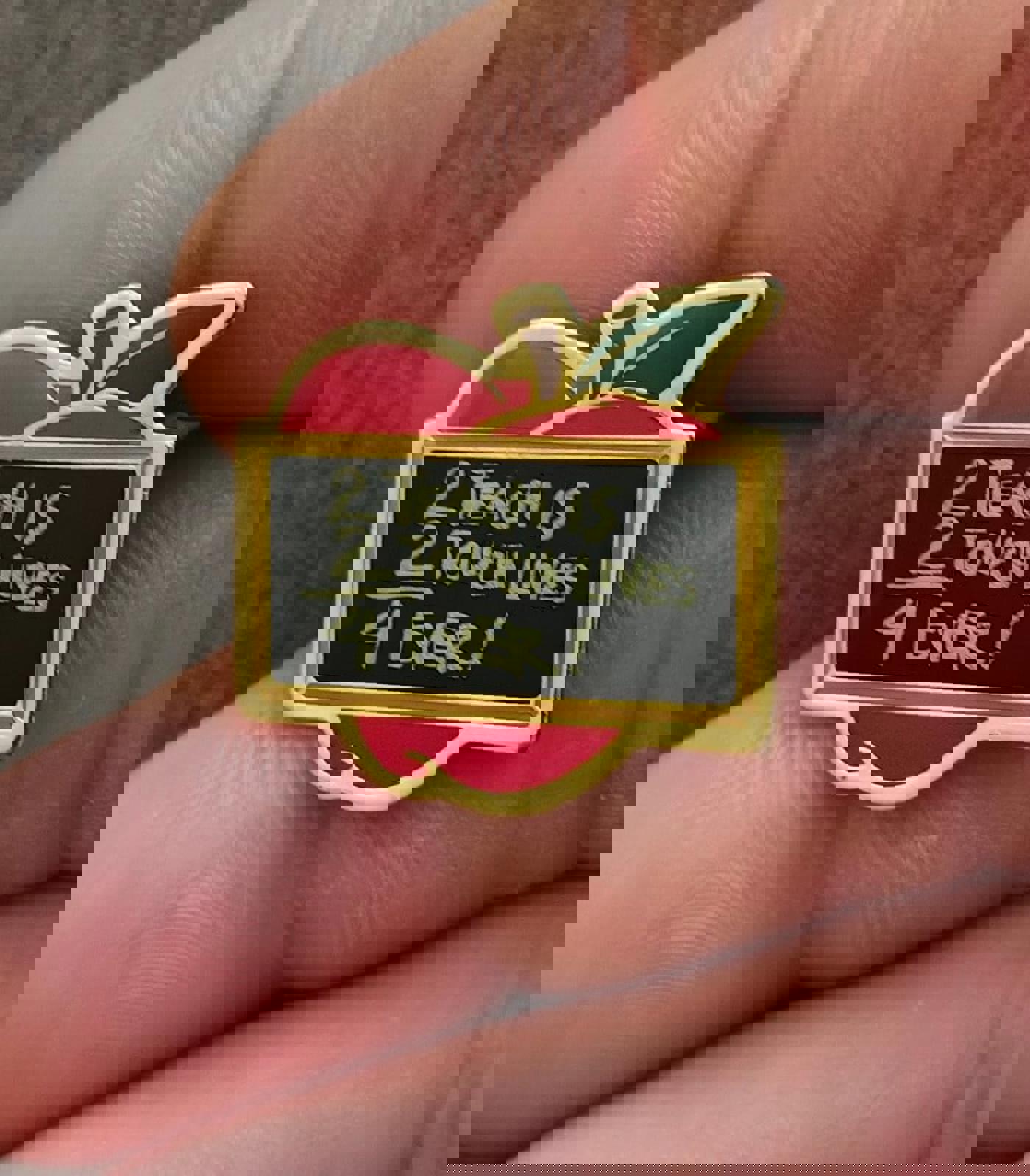 It measures approximately 1" x 1" tall. Beautiful, High quality cloisonne die struck metal pin. Perfect for a teacher.