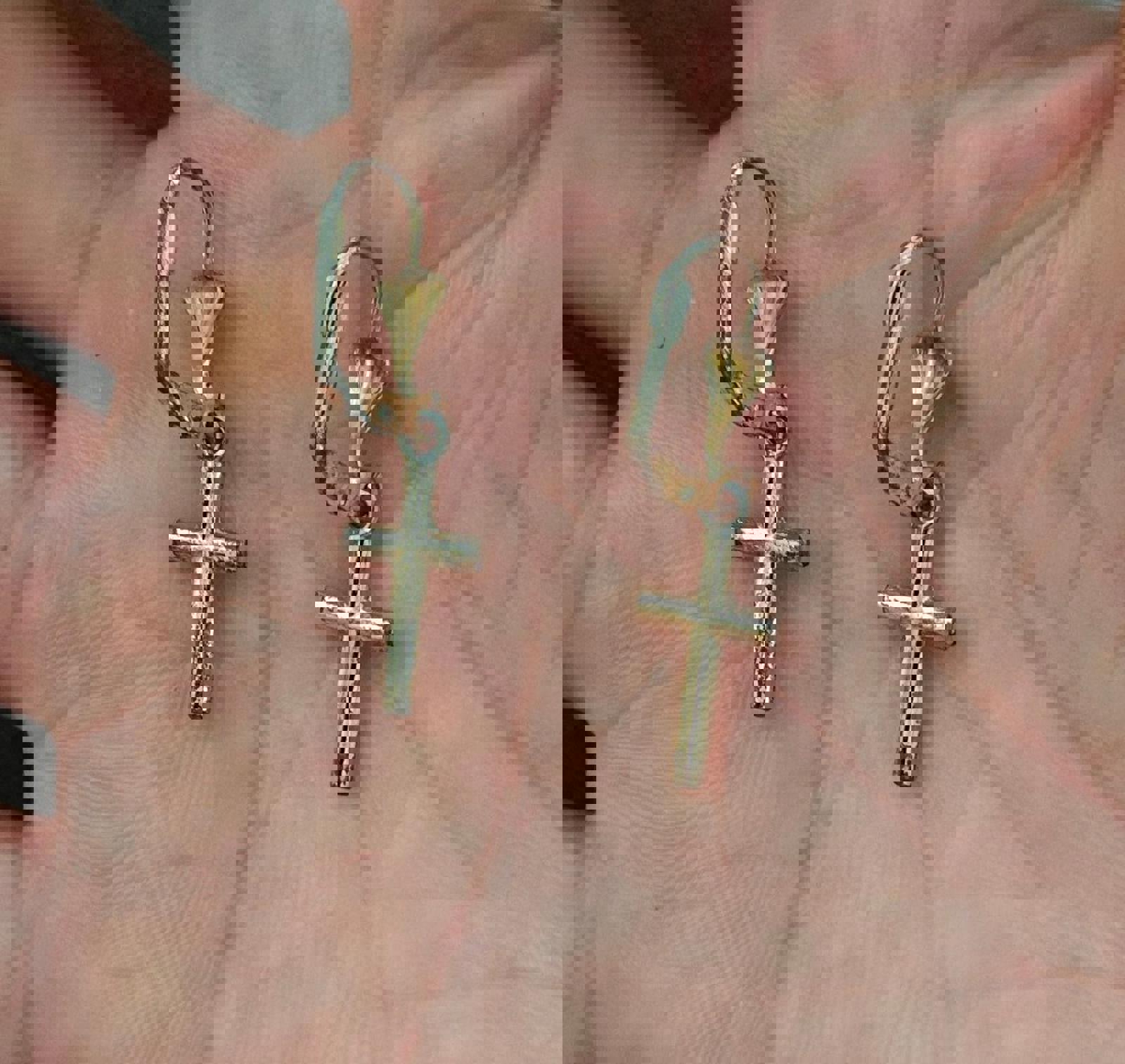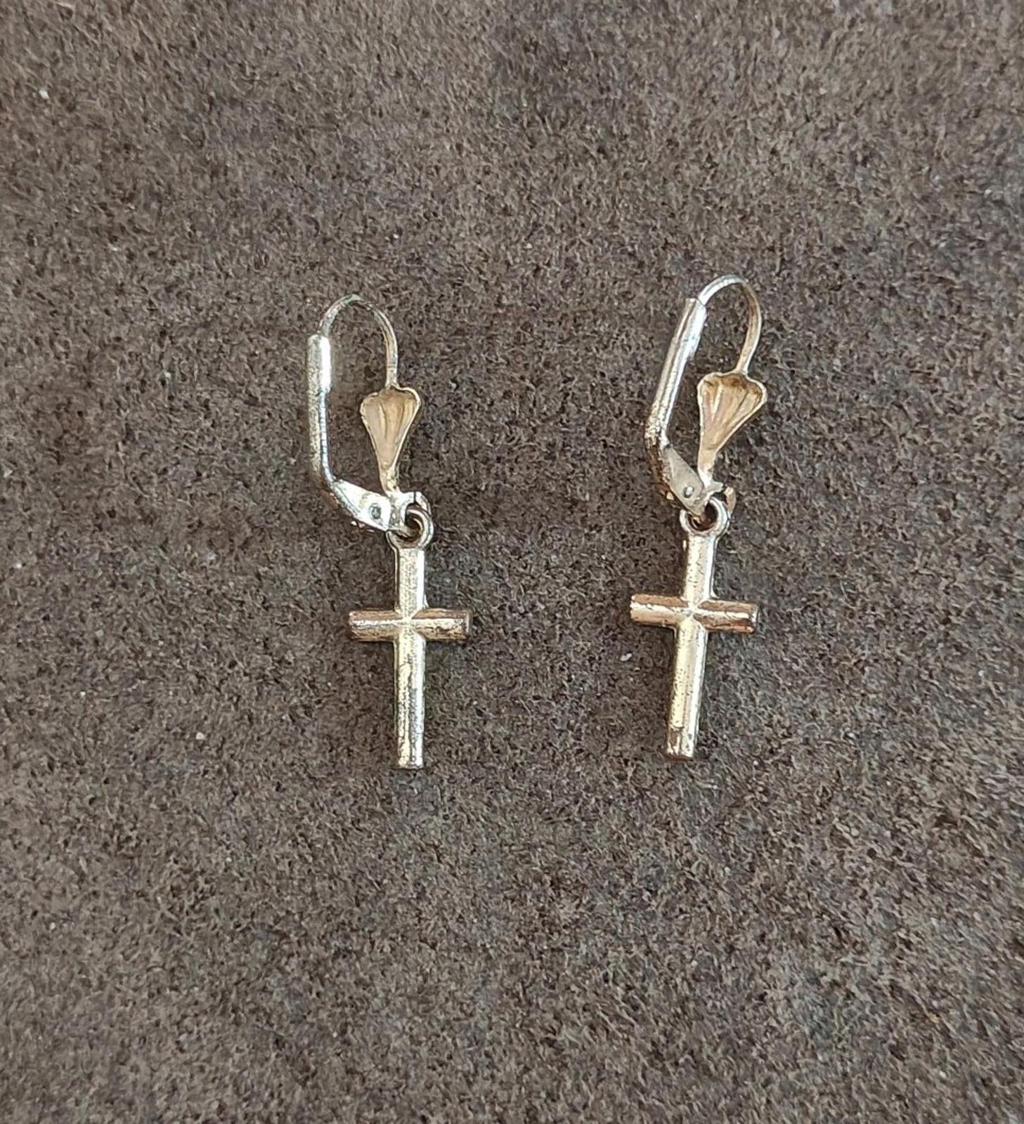 1980's Cross Gold Tone Dangle Earrings are in Good Condition.