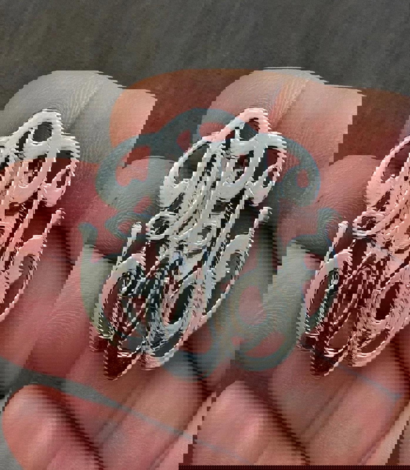 This Great Looking Vintage 1980's Fancy Monogram Silver Tone Scarf Clip In Good Condition.
