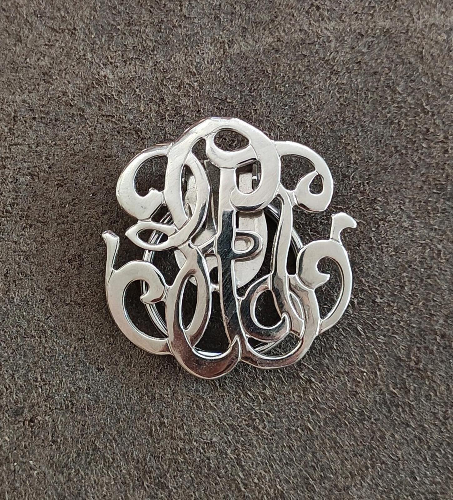 1980s Fancy Monogram Silver Tone Scarf Clip
