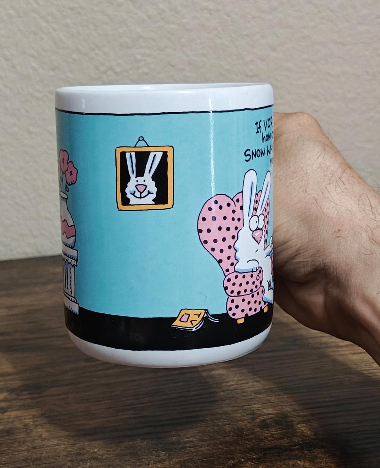 This Humorous Vintage 1980's Hallmark "If VCR's Are So Easy To Use How Come I Just Taped Snow White Meets the Swamp Monster From Mars" Ceramic Mug is in Great condition.