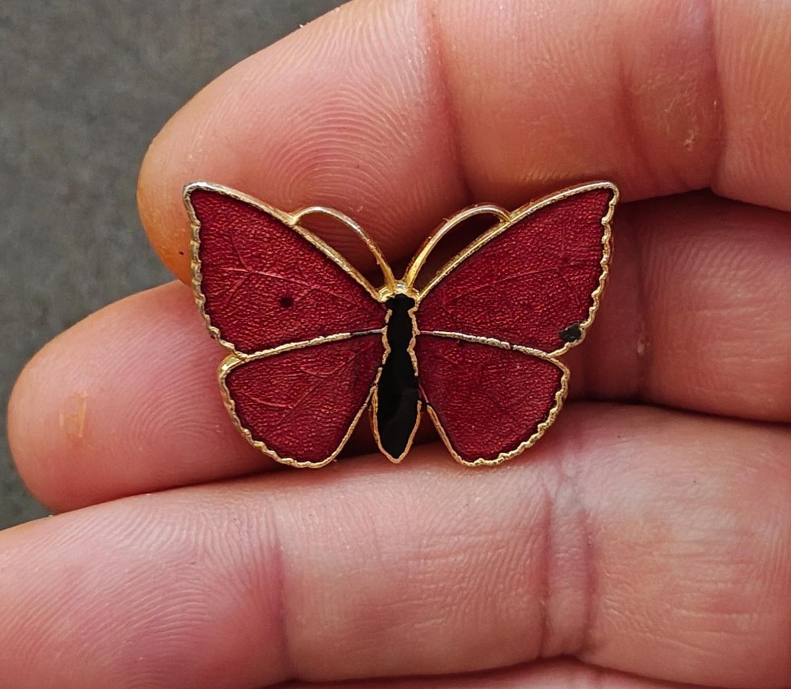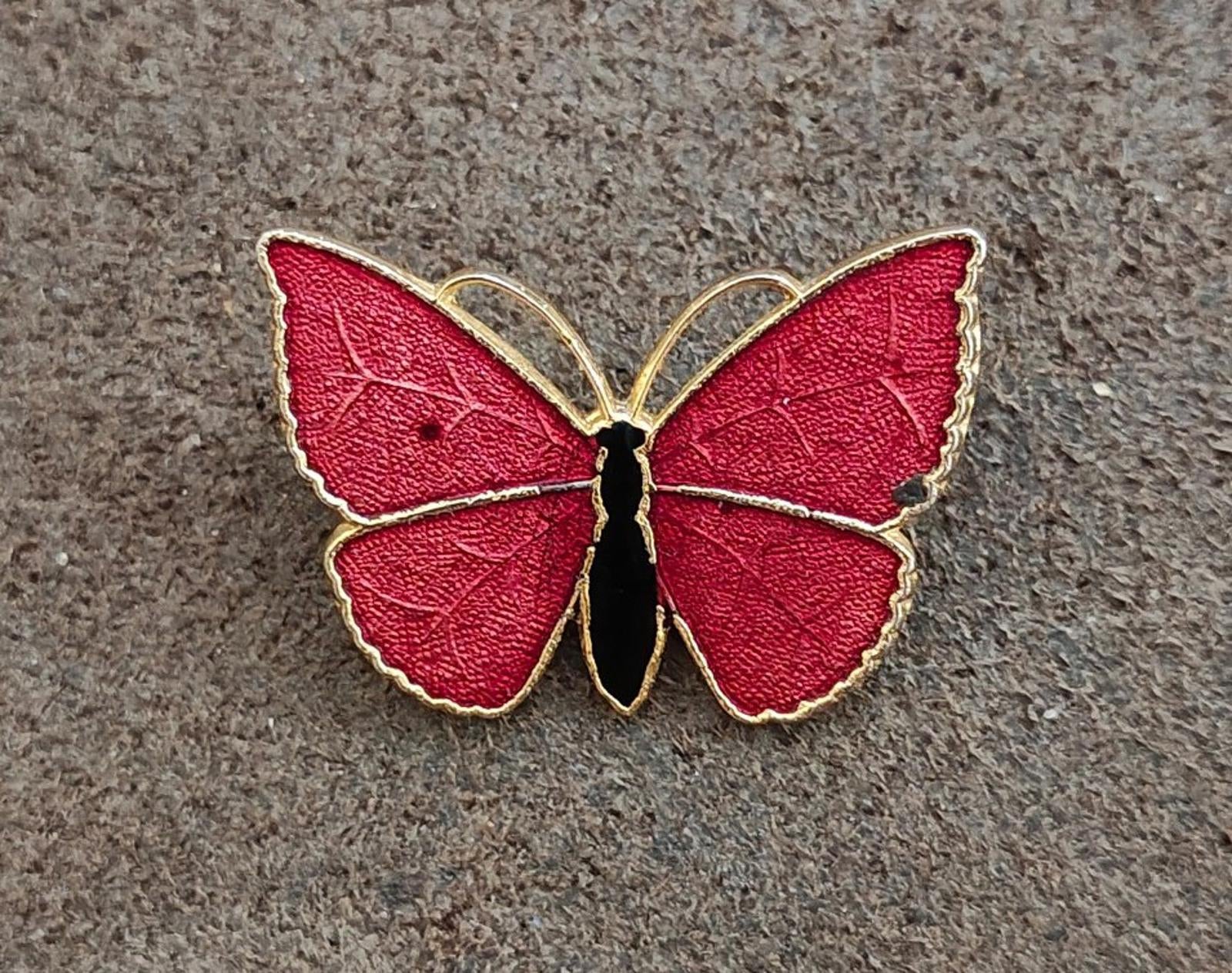 This Beautiful Vintage 1980's Intricate Butterfly With Red Leaf Wings Gold Tone Enamel Brooch Pin is in Great Condition. It measures approximately 1" x 1 1/4".