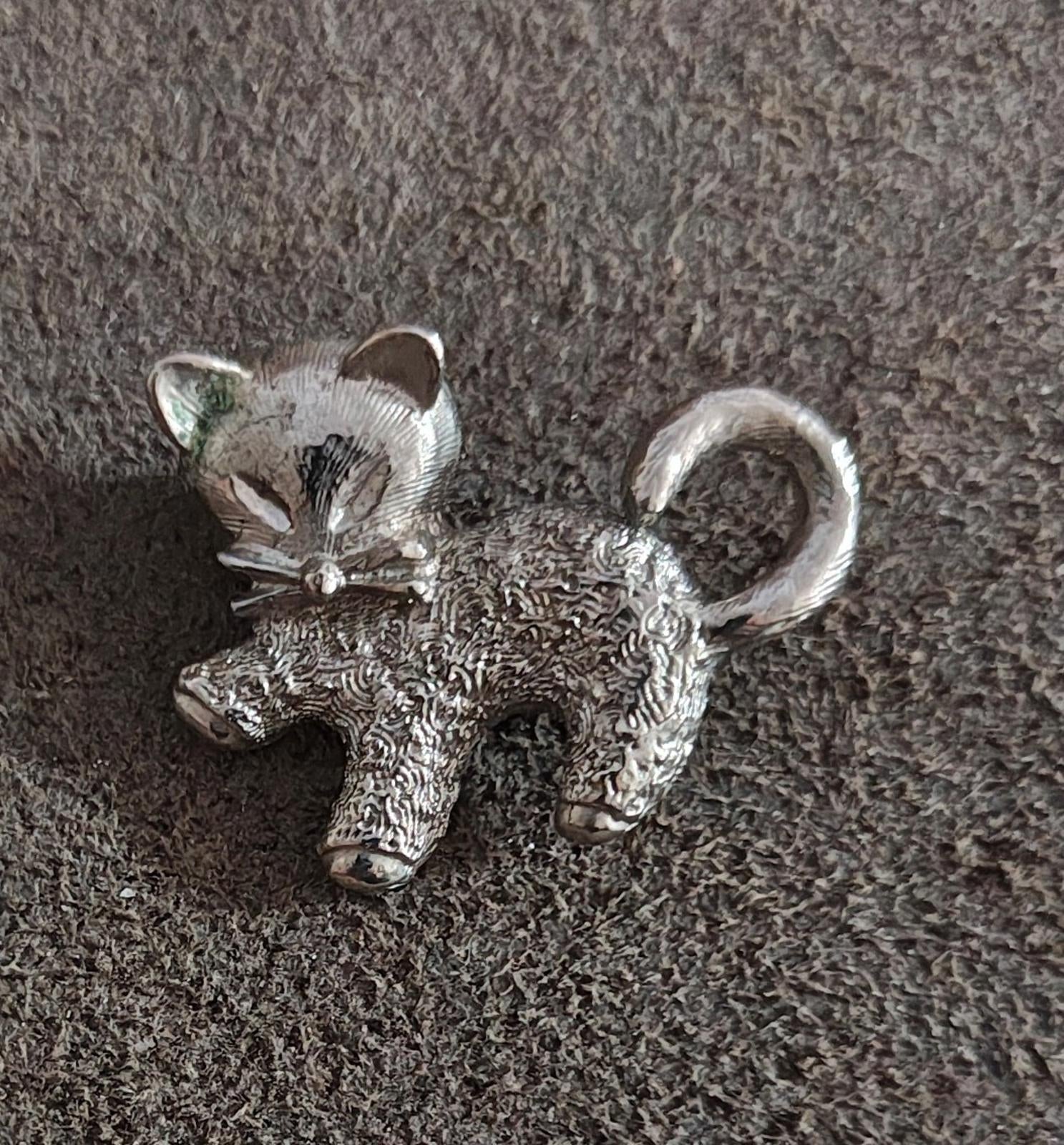 1980's Kitty Cat Silver Tone Textured Brooch Pin
