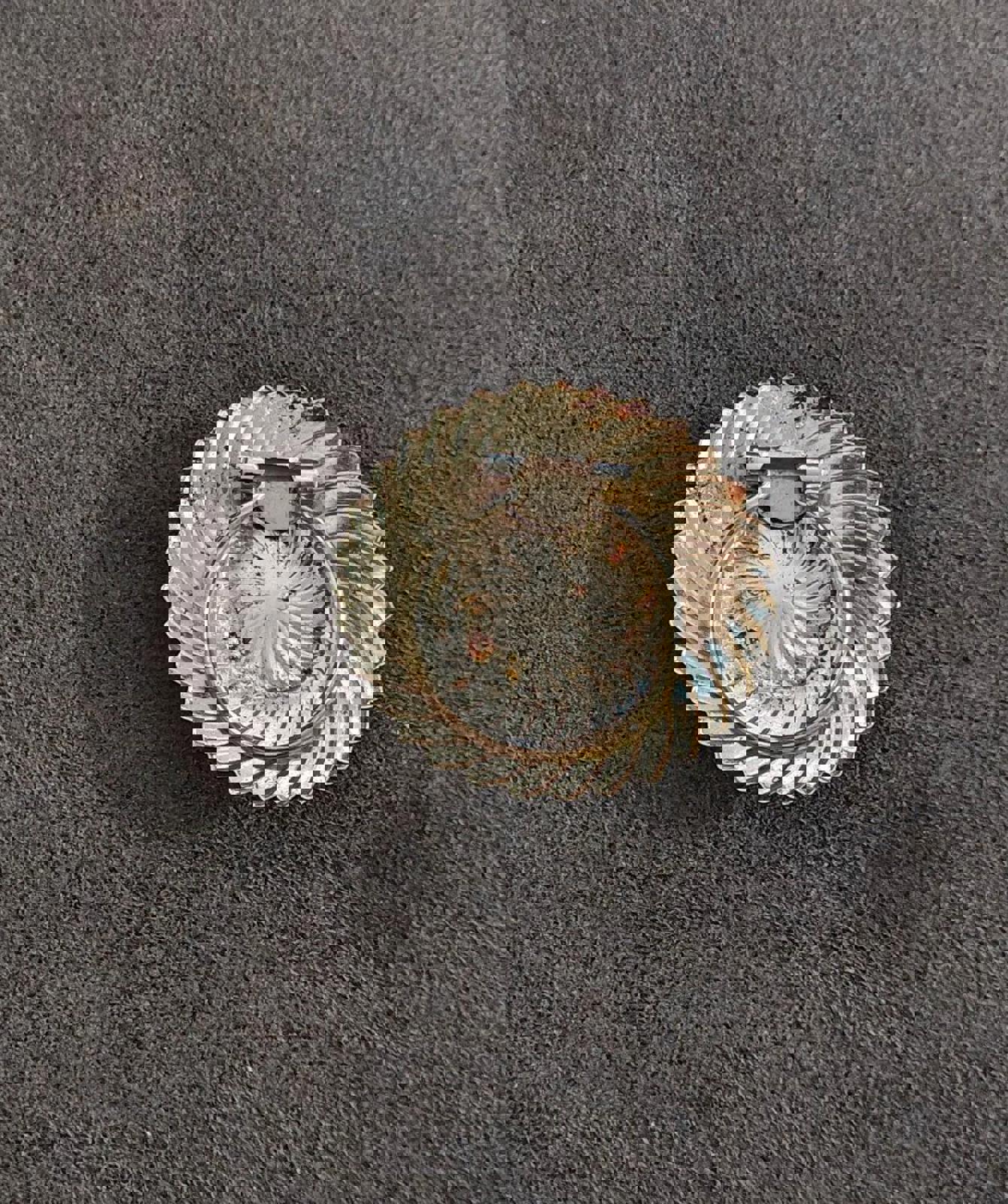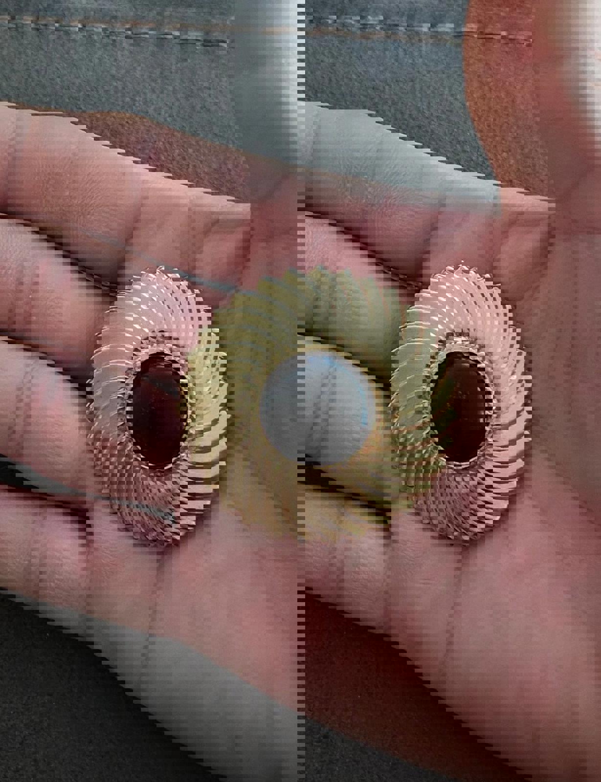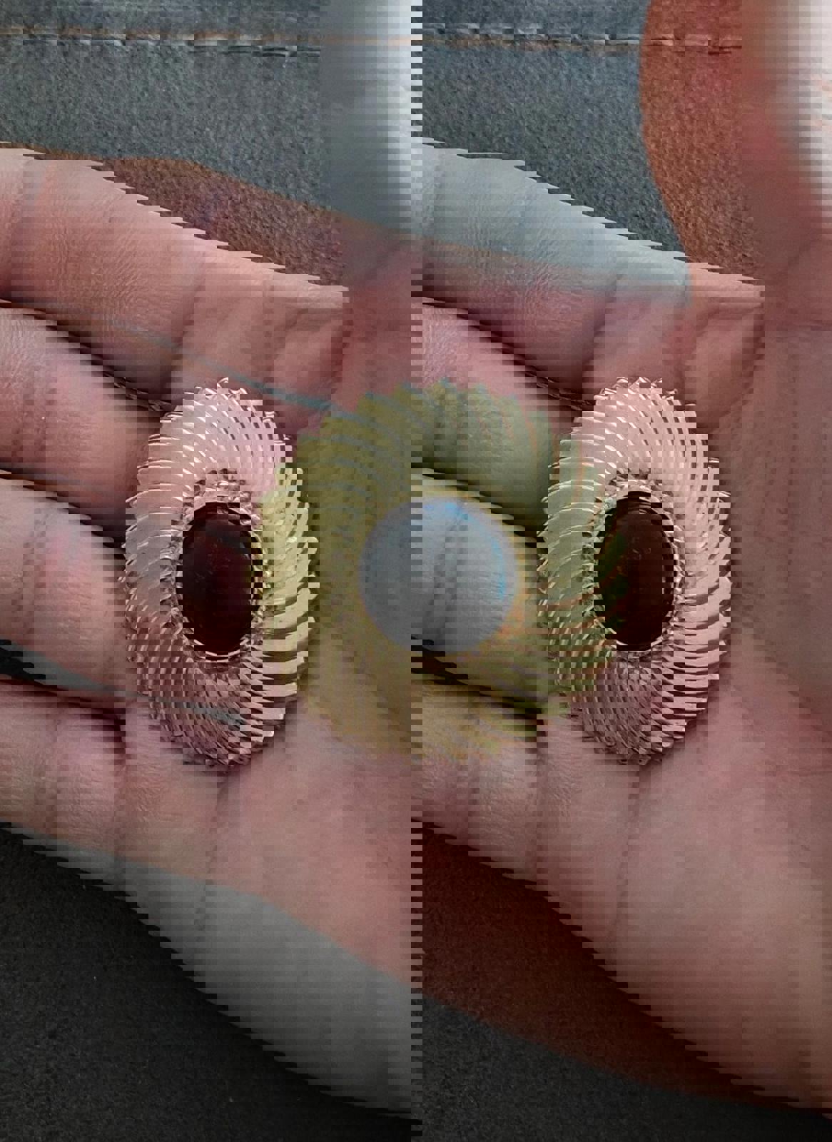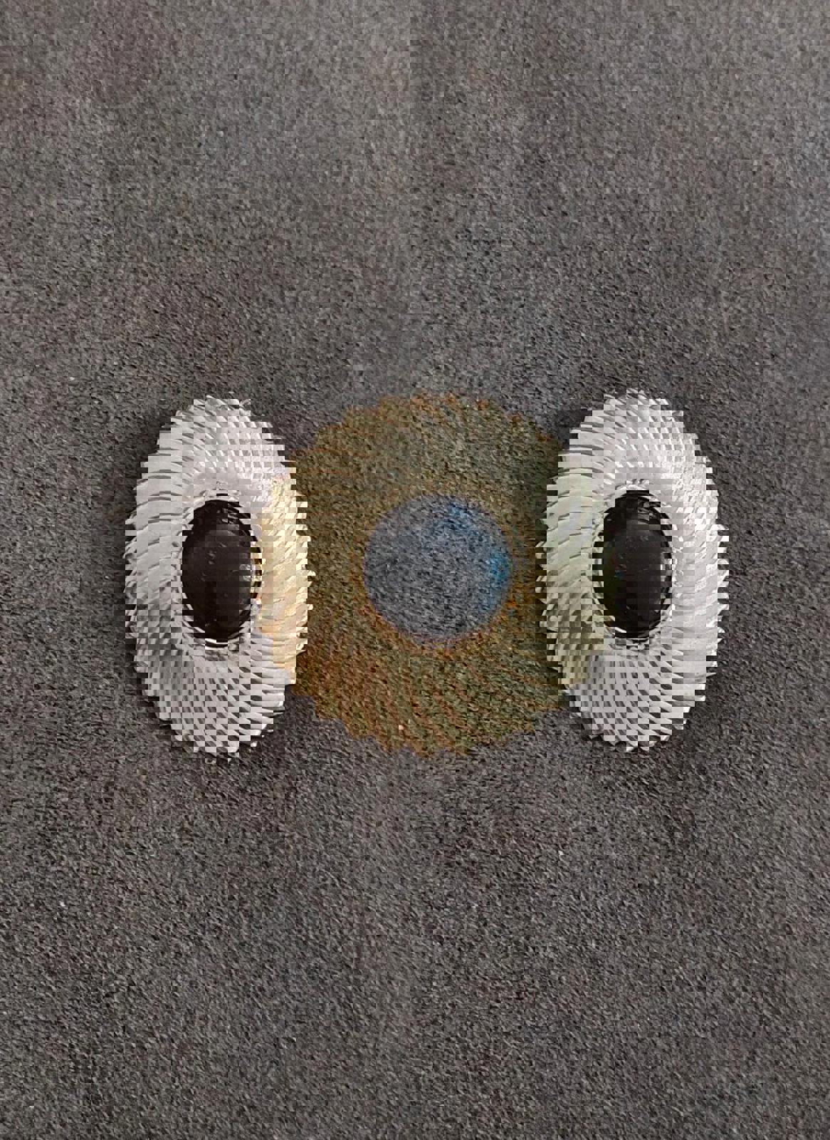It measures approximately 1.7". Pretty Vintage 1980's Round Swirl & Black Lucite Resin Cabochon Gold Tone Scarf Clip is in Good Condition. Great design and detail and nicely textured scarf clip.
