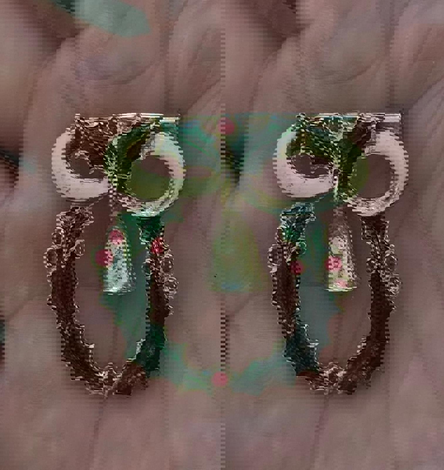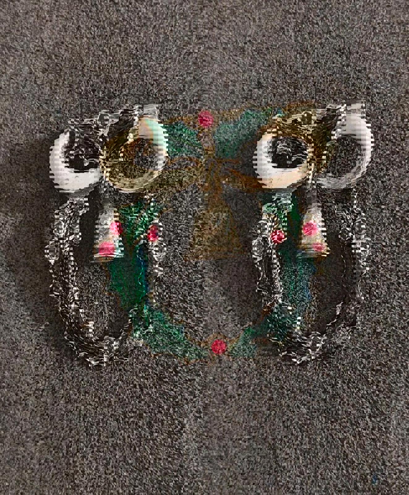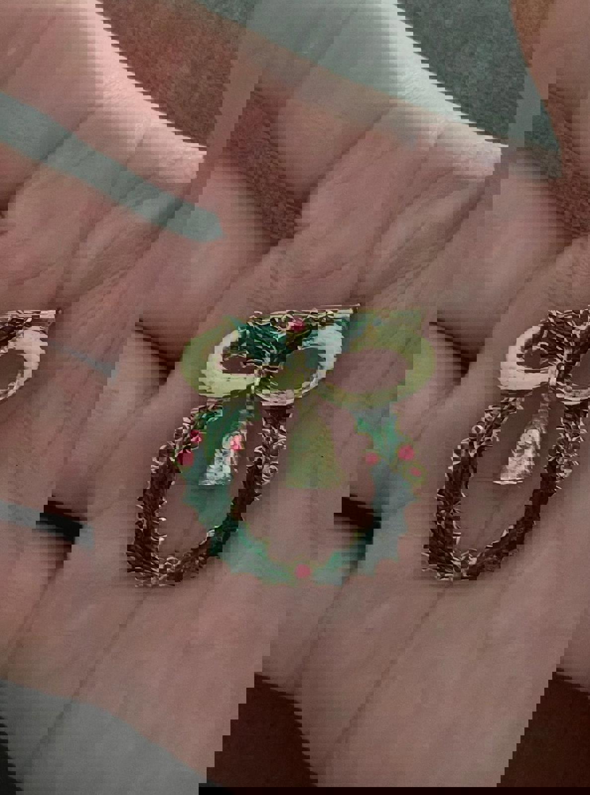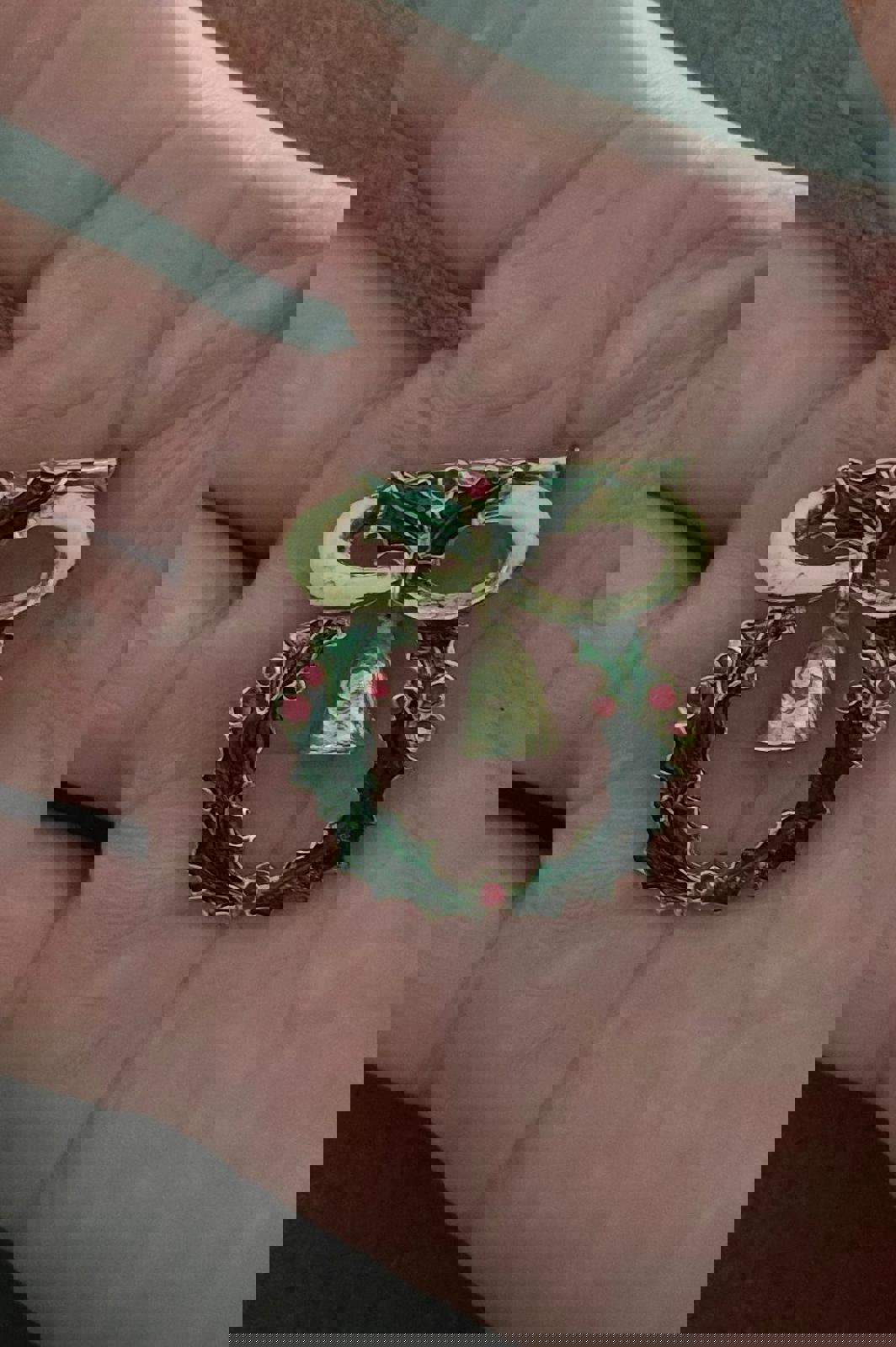 1980s Vintage Christmas Wreath Gold Tone Enamel Brooch Pin