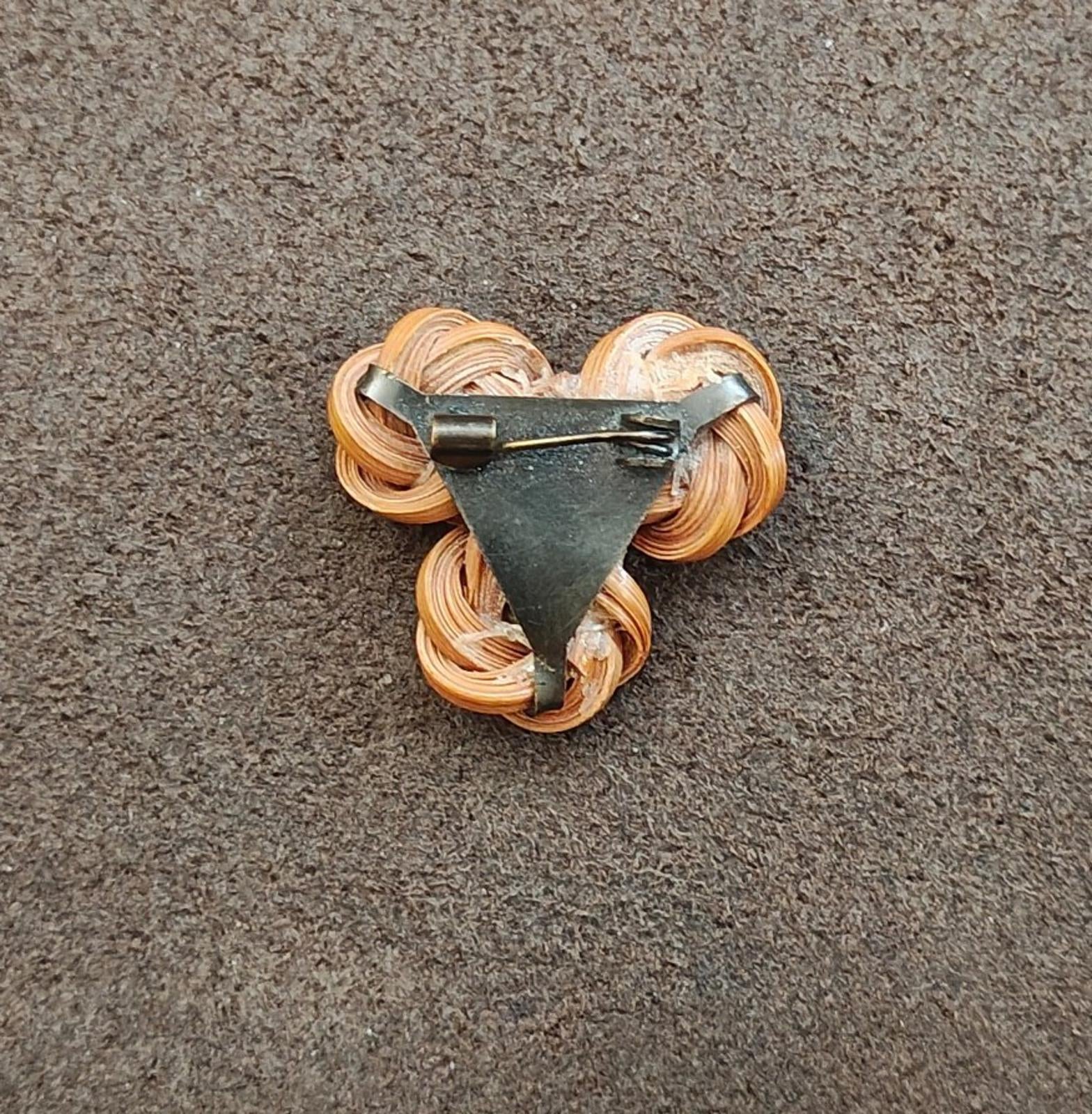 1980s Vintage Handmade Bamboo Craft Three Flowers With Rhinestones Pin Brooch.