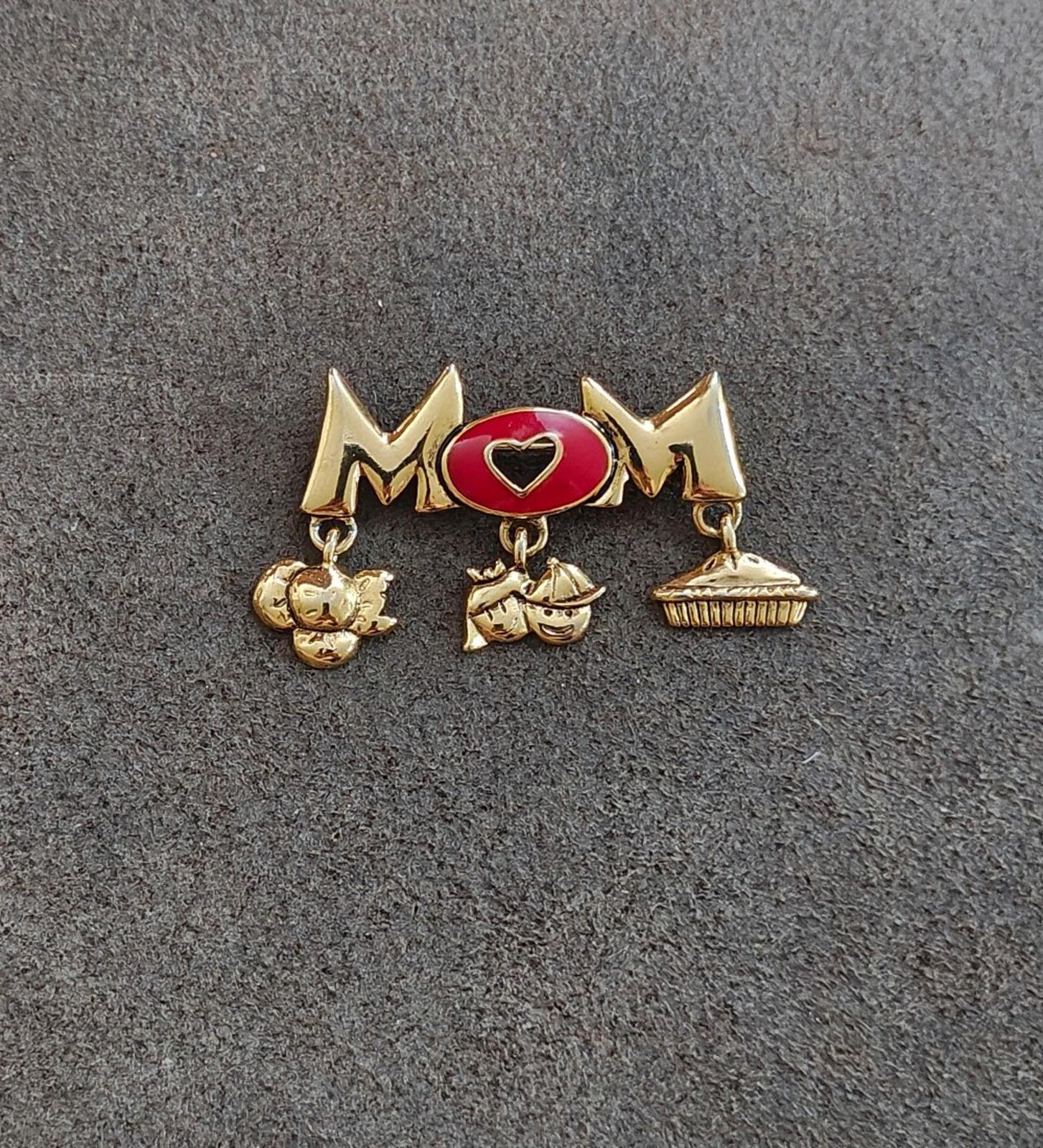 1990's MOM Gold Tone Red Enamel Brooch Pin