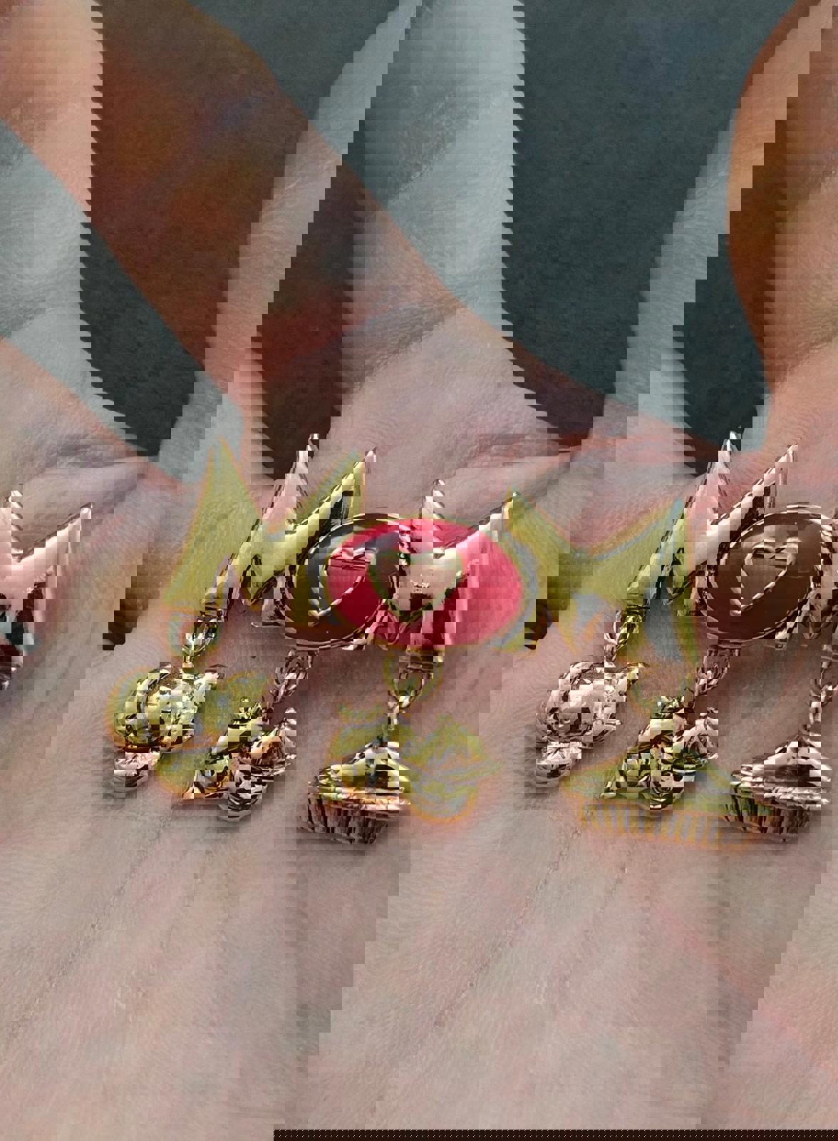 This Beautiful Vintage 1990's MOM Gold Tone Red Enamel Brooch Pin is in Excellent Condition. Marked Style On The Back.