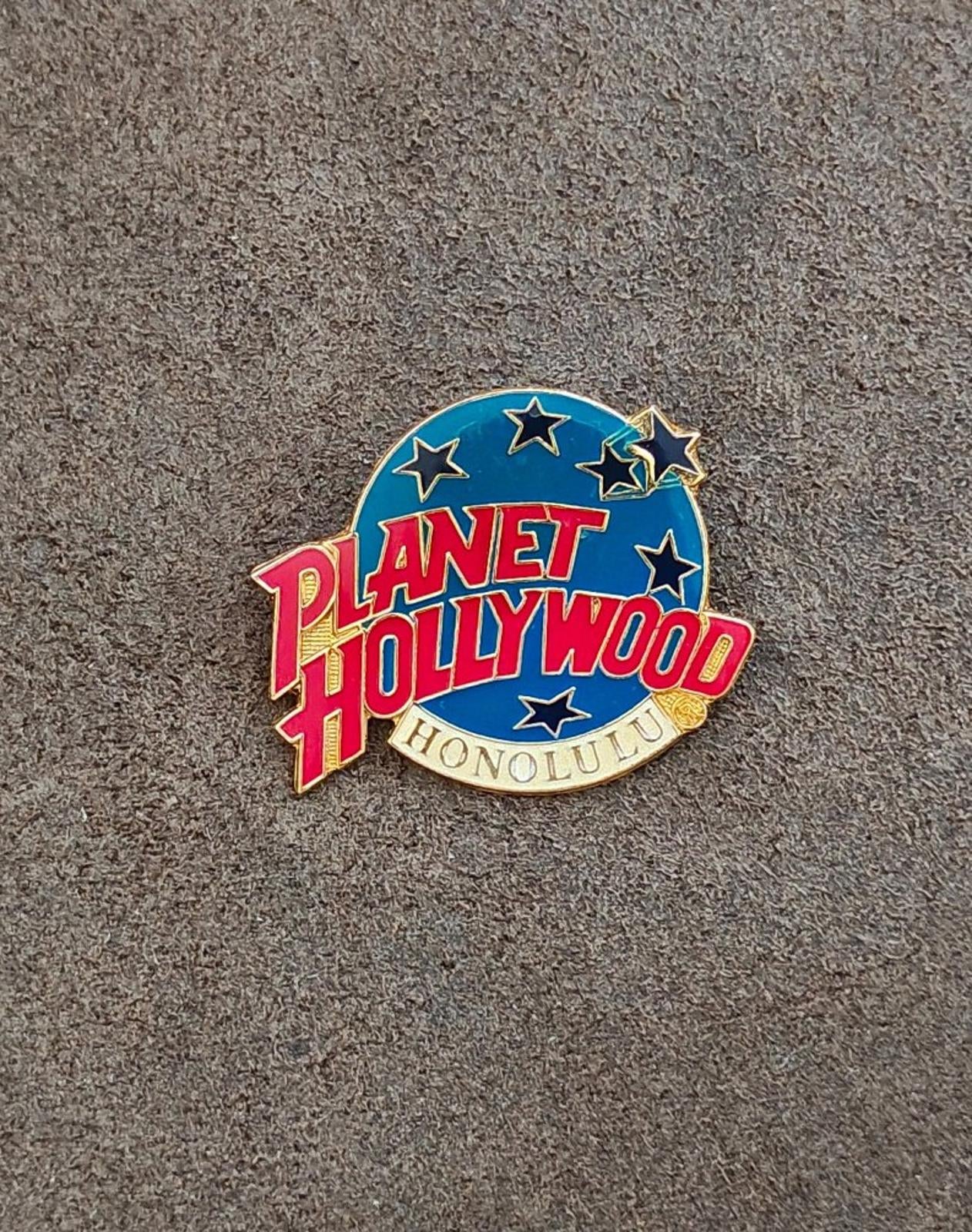 It measures approximately 2" x 1 1/2" and Made in Taiwan. This is a vintage souvenir pin from the Planet Hollywood restaurant that was formerly located in Honolulu, Hawaii. Planet Hollywood is a chain of themed restaurants inspired by the popular culture of Hollywood. The chain sells various merchandise, including clothing, bags, and pins.