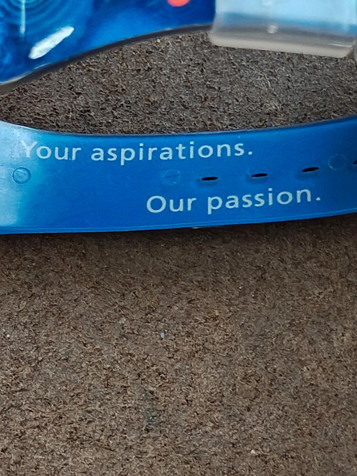 This is a Swatch Zurich Financial Services SKK103Z watch, a vintage, limited-edition timepiece. It was produced in 1994 for Zurich Financial Services and was not originally sold in retail stores. The watch is a Swiss-made, skeleton-style quartz watch with a clear plastic case and a blue and multicolor band.