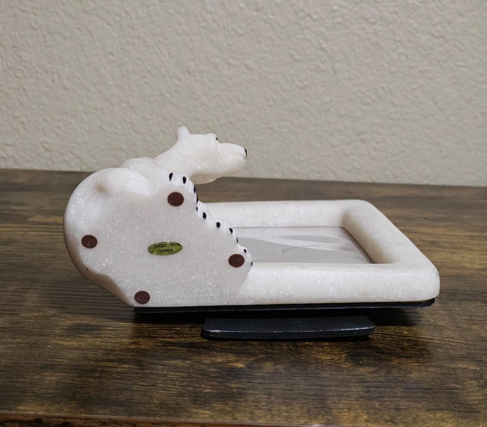 This Cute Vintage 2001 Second Nature Quarry Critters Bear Figurine Picture Frame is in Good Condition. It is made Of Soap Stone.