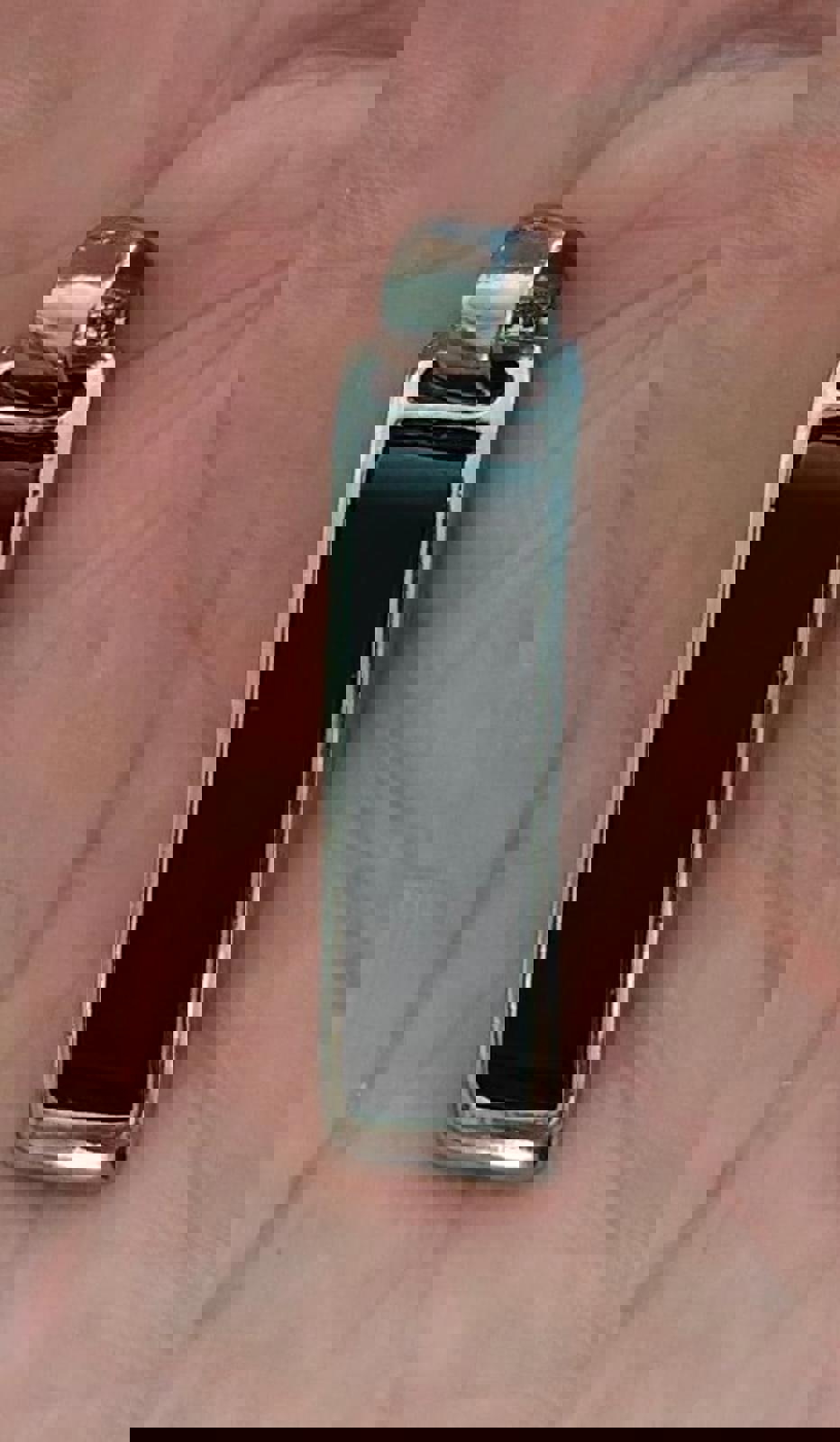This Pretty Vintage 1990's Lia Sophia "VICE VERSA" Reversible Black & White Silver Rectangle Slide Pendant is in Great Condition. The pendant measures approximately 1 1/2"' tall.