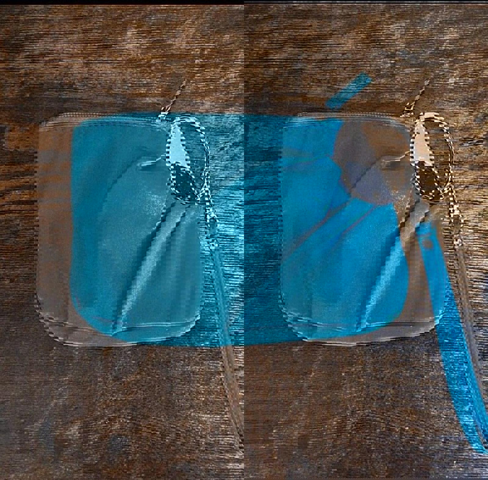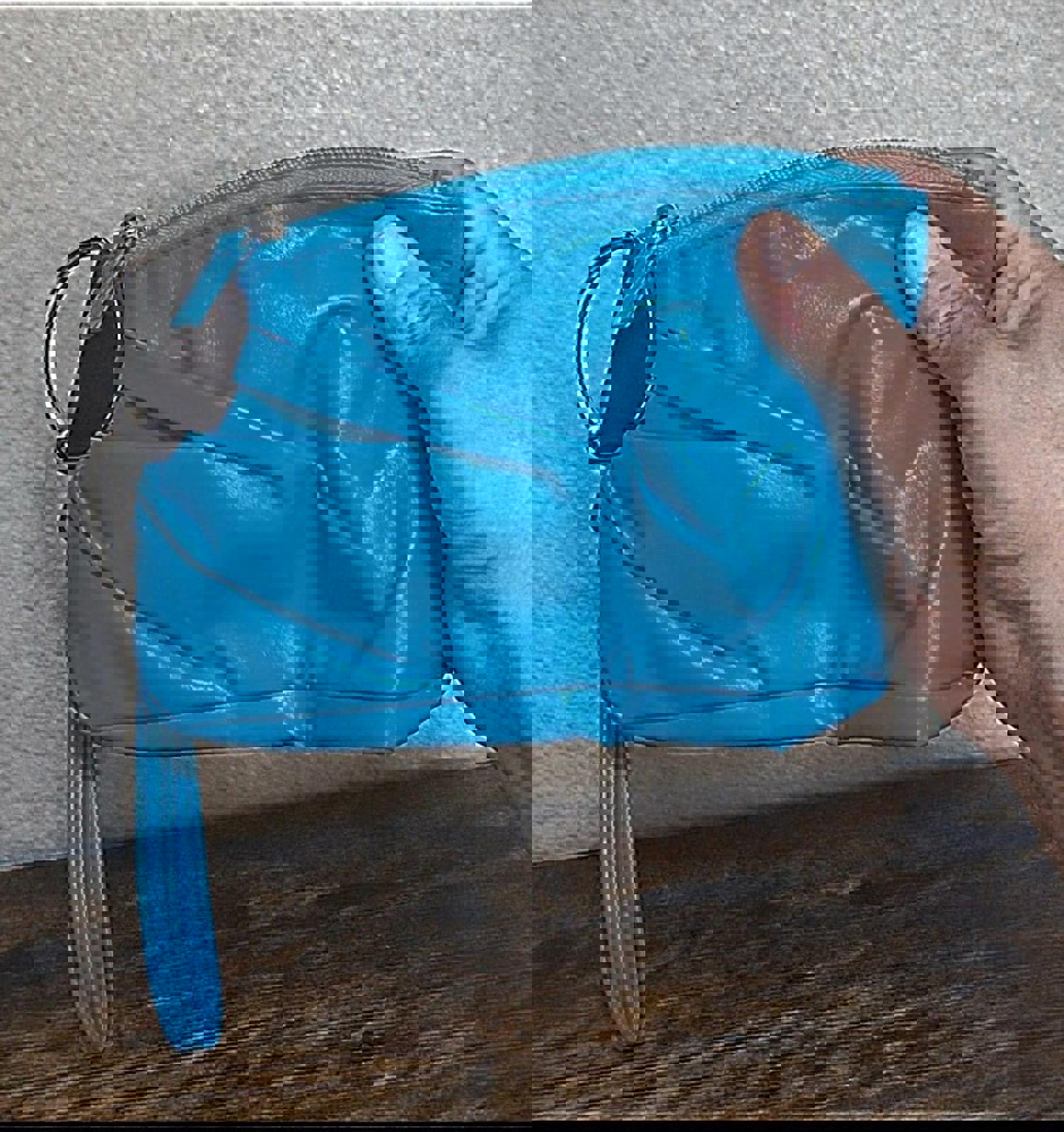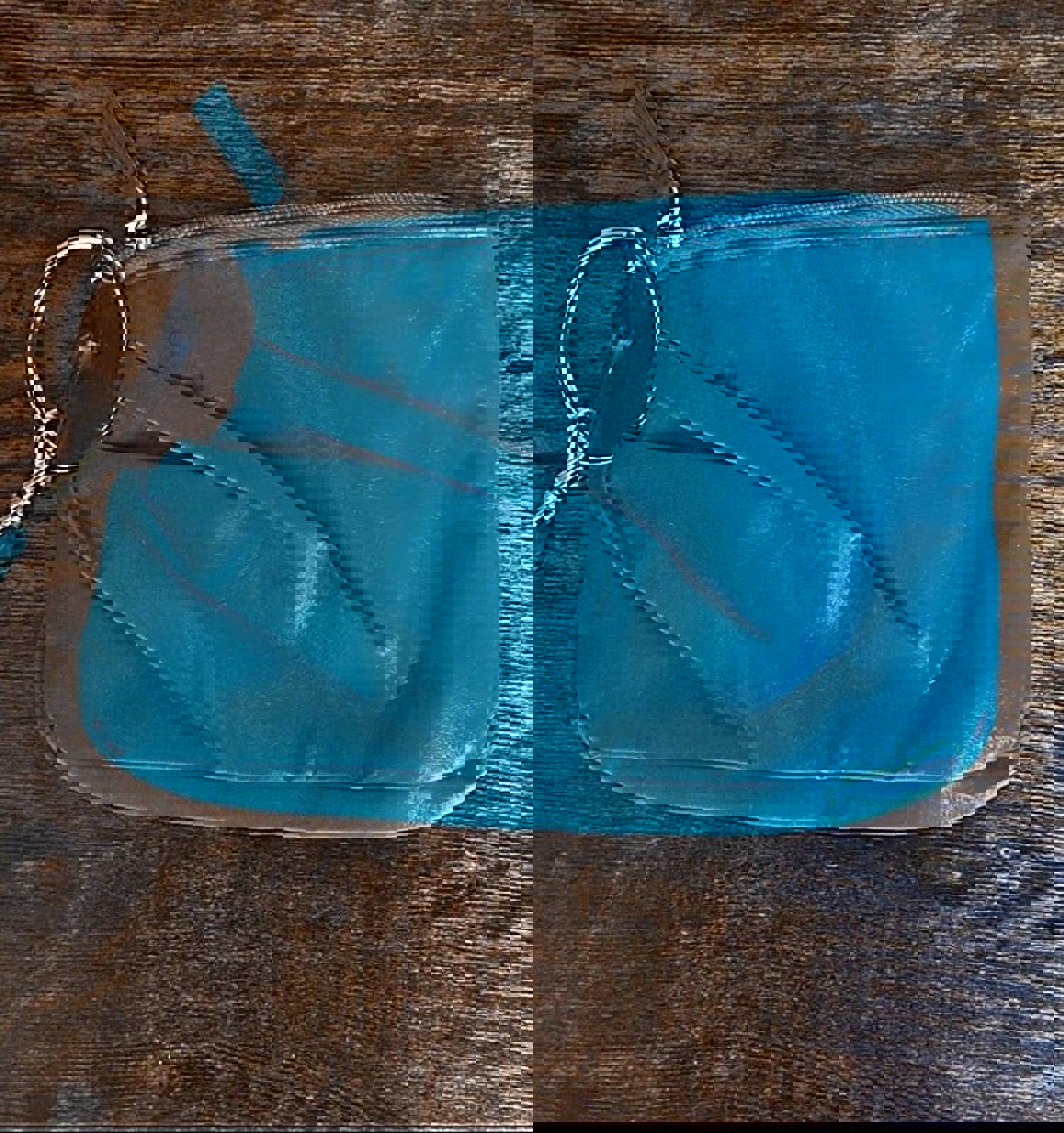 Beautiful Vintage Teal & Silver PVC Leather Clutch Purse With Handle.