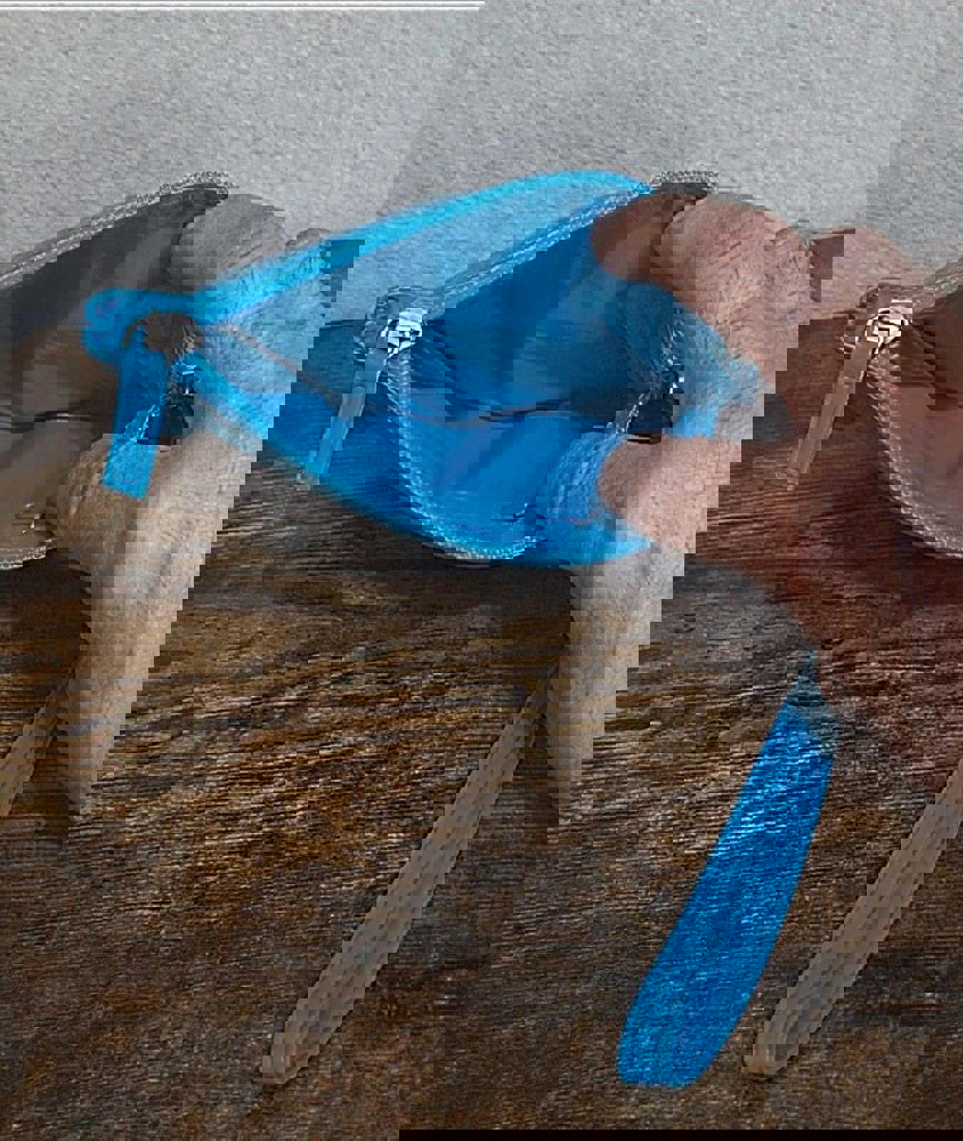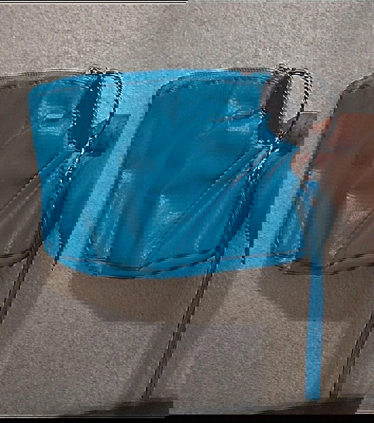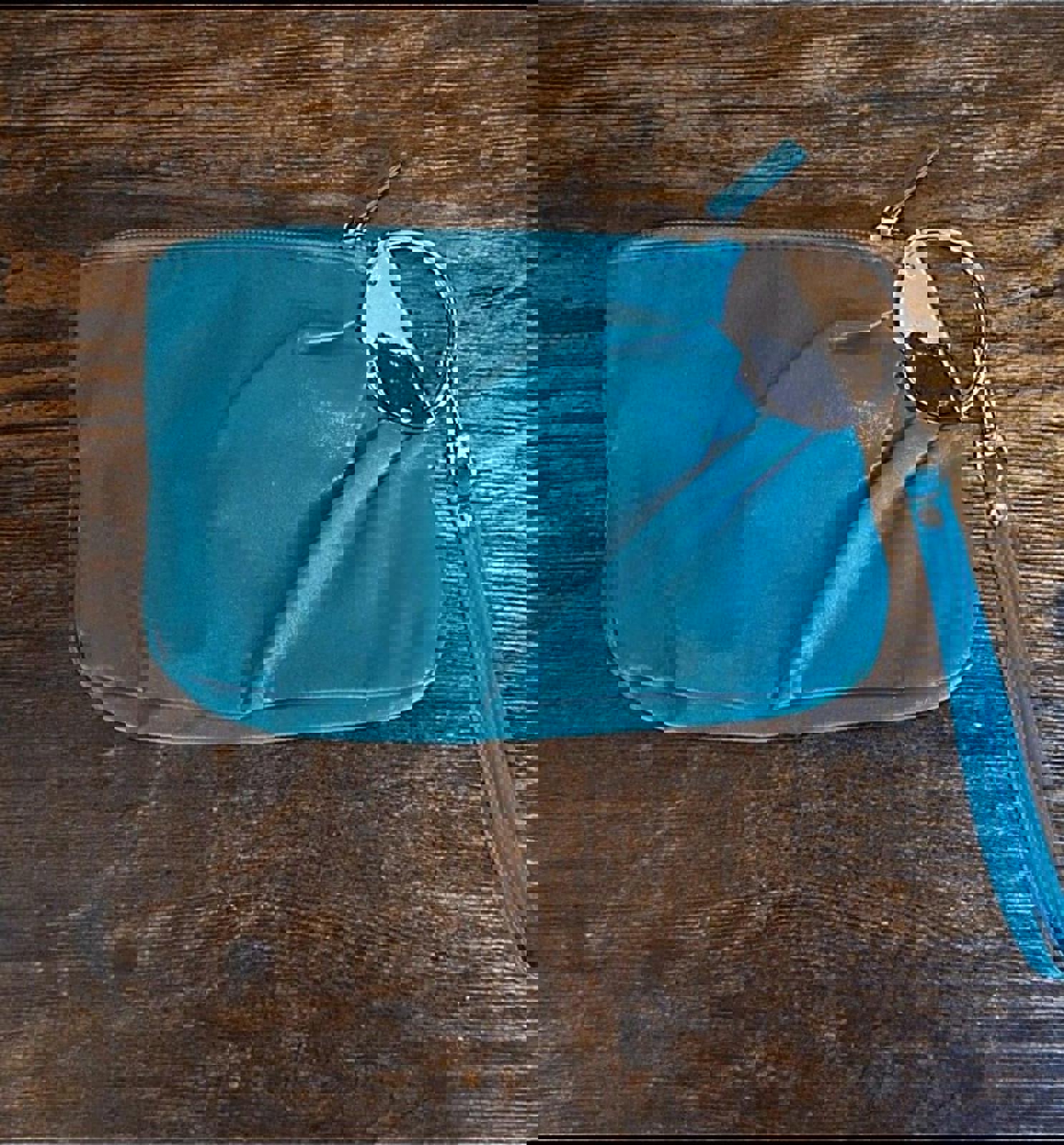 Beautiful Vintage Teal & Silver PVC Leather Clutch Purse With Handle.