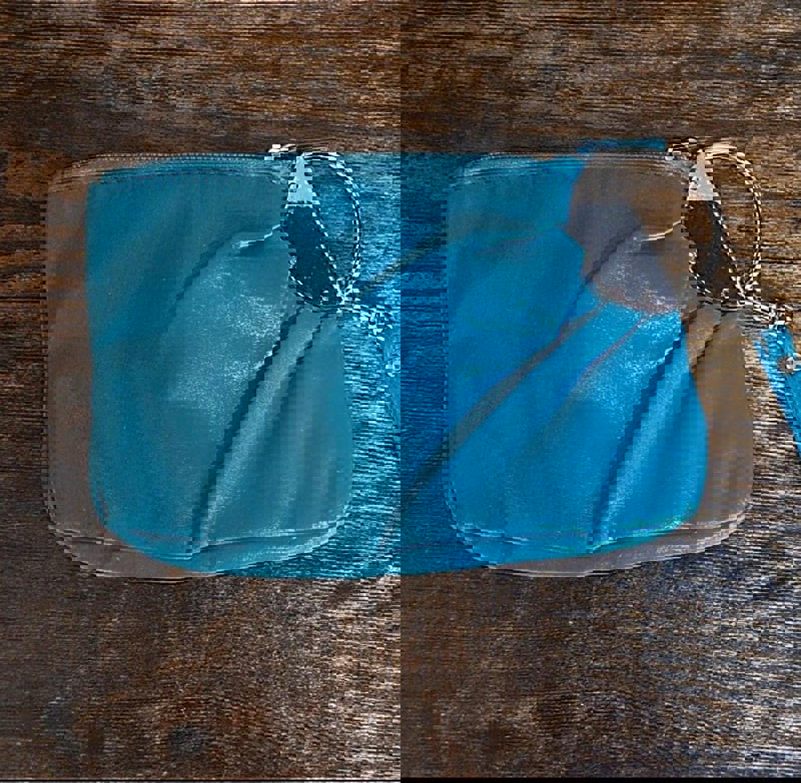 Vintage Teal Leather Clutch Bag/Purse