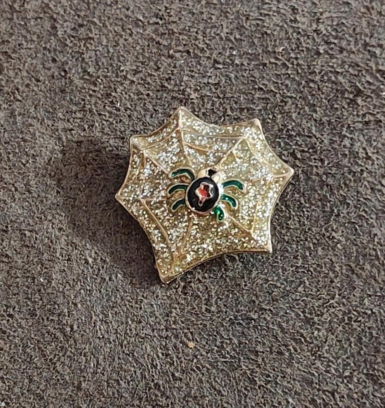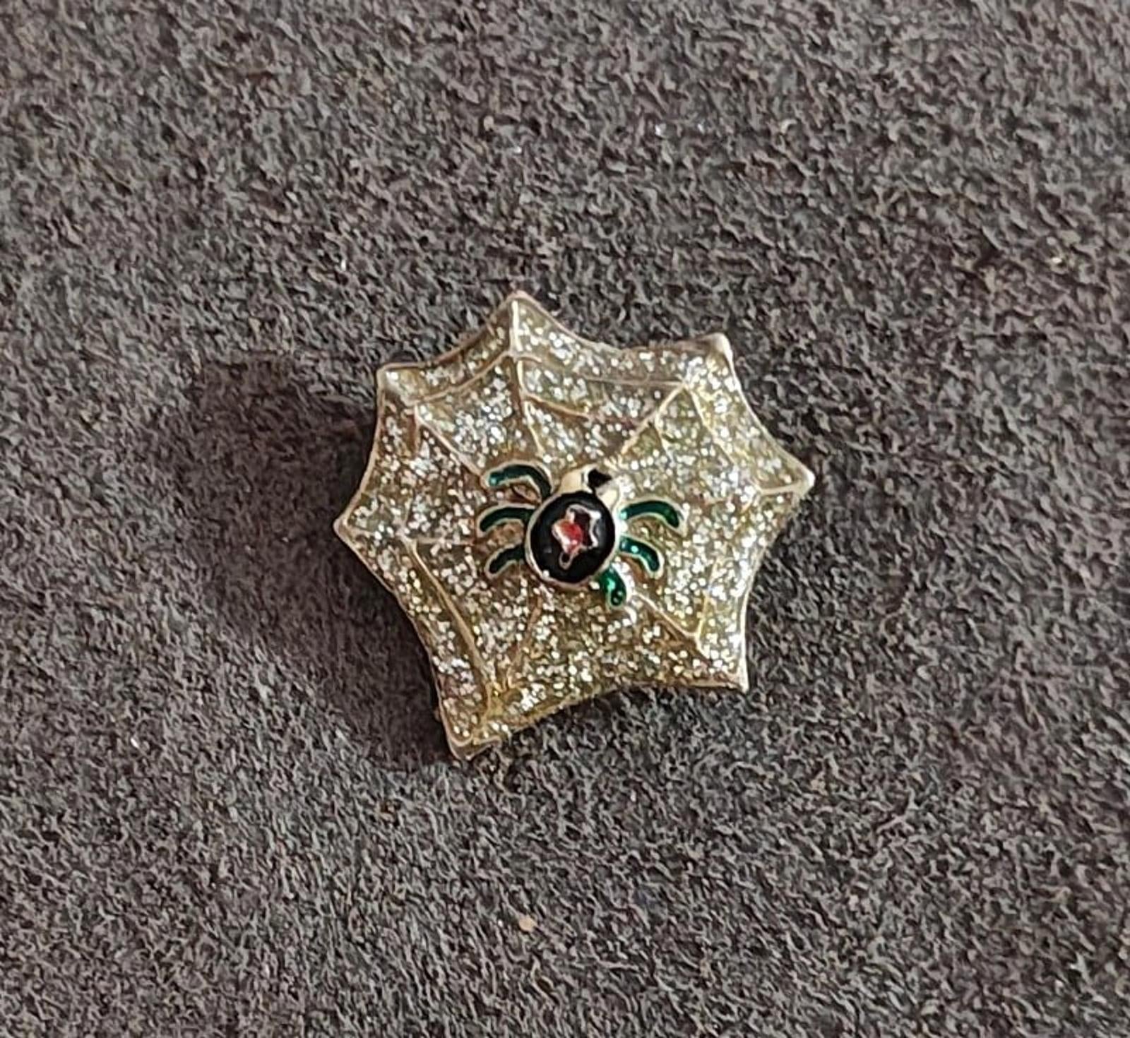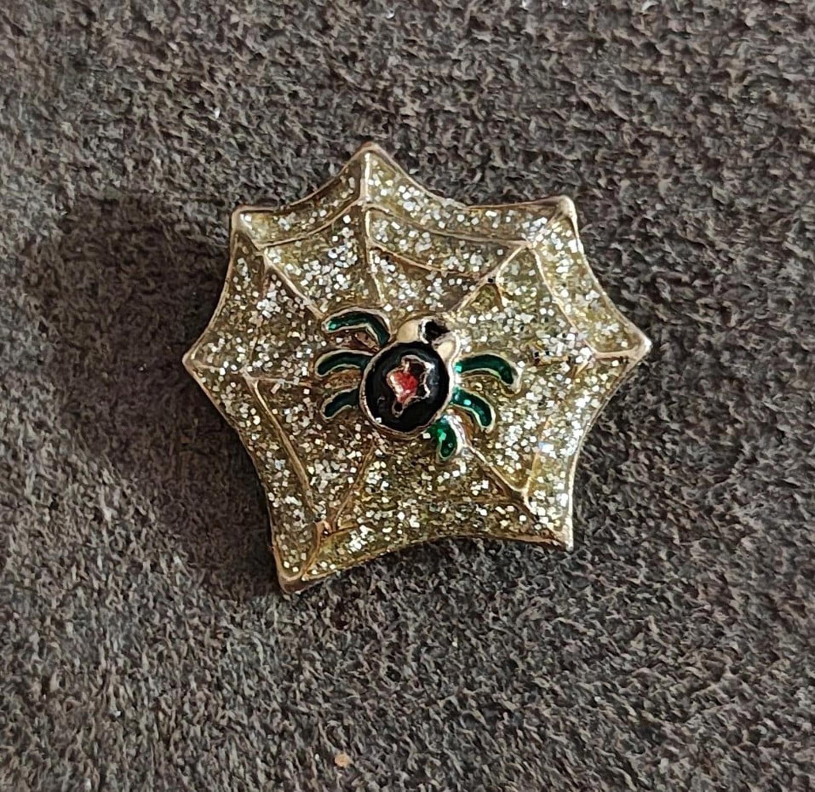 Black Widow Spider in Glitter Web Enamel Pin Brooch