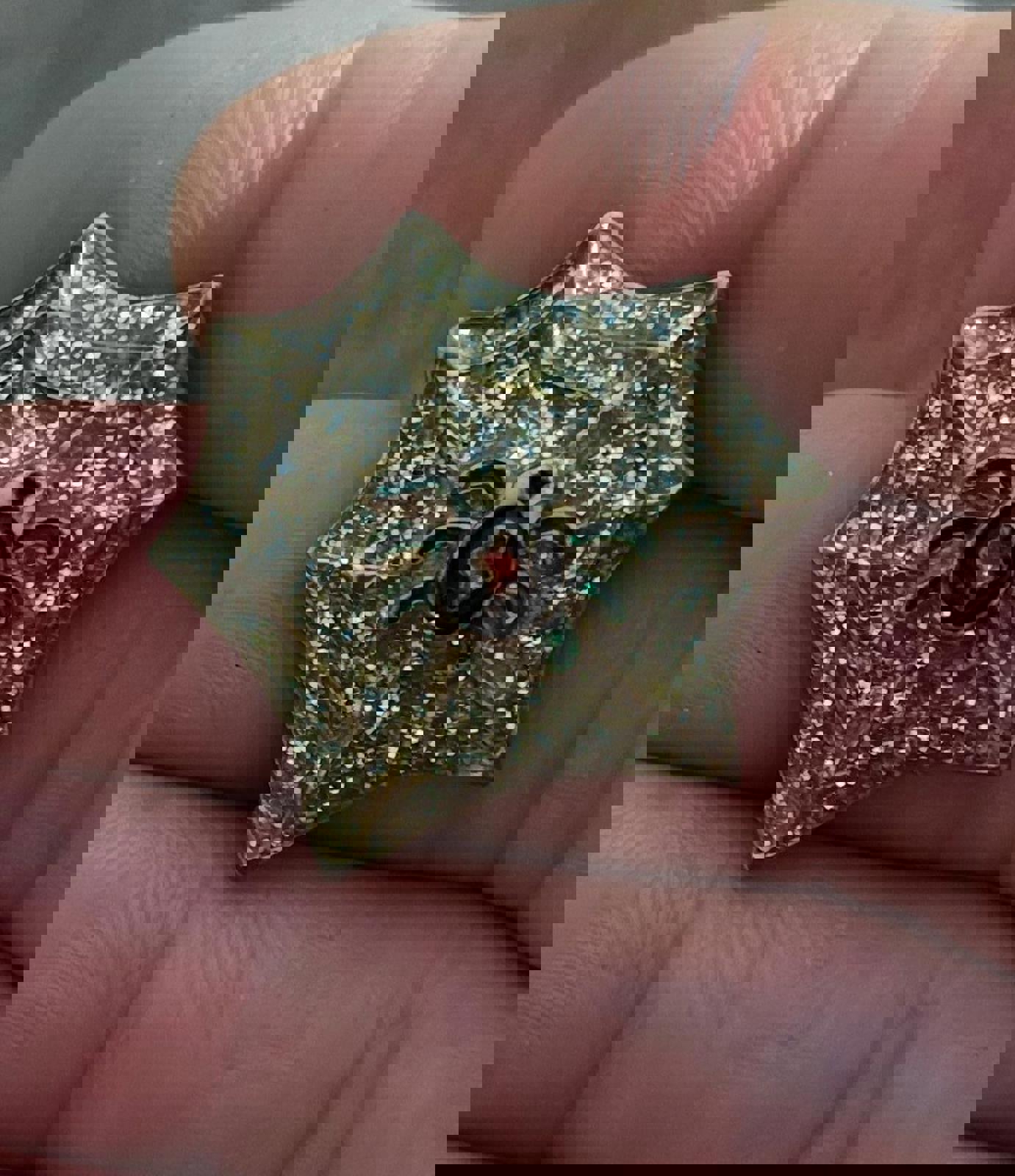 This Cool Black Widow Spider in Glitter Web Silver Tone Enamel Pin Brooch In Excellent Condition.