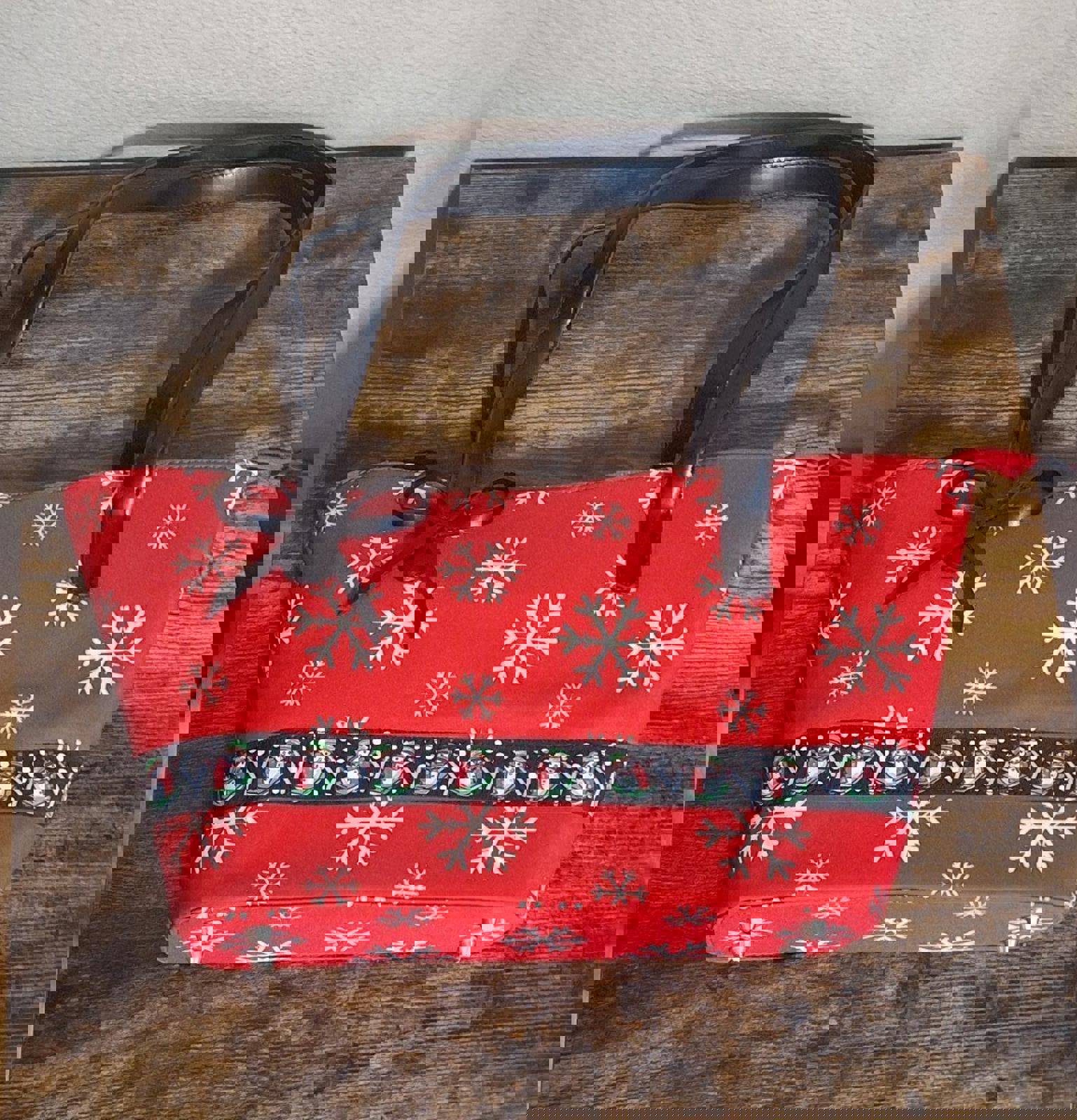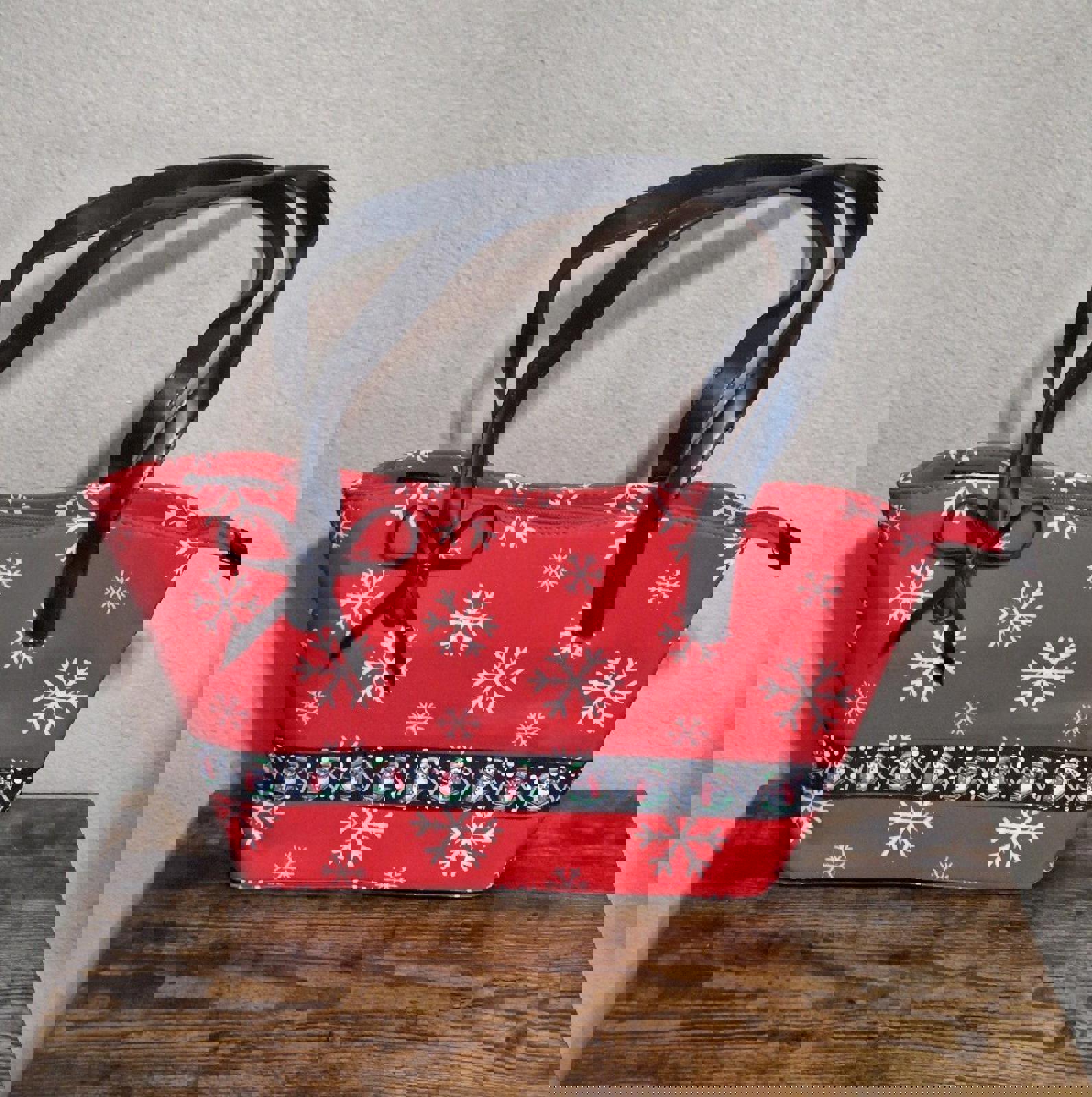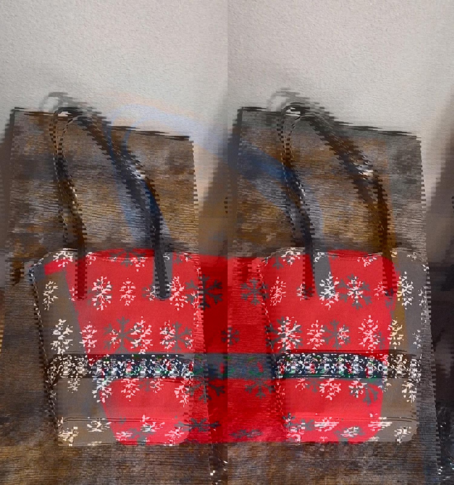 Cute Classic Christmas Snowman With Snowflakes Red Green White Black Handbag/Shoulder Bag is in great condition.