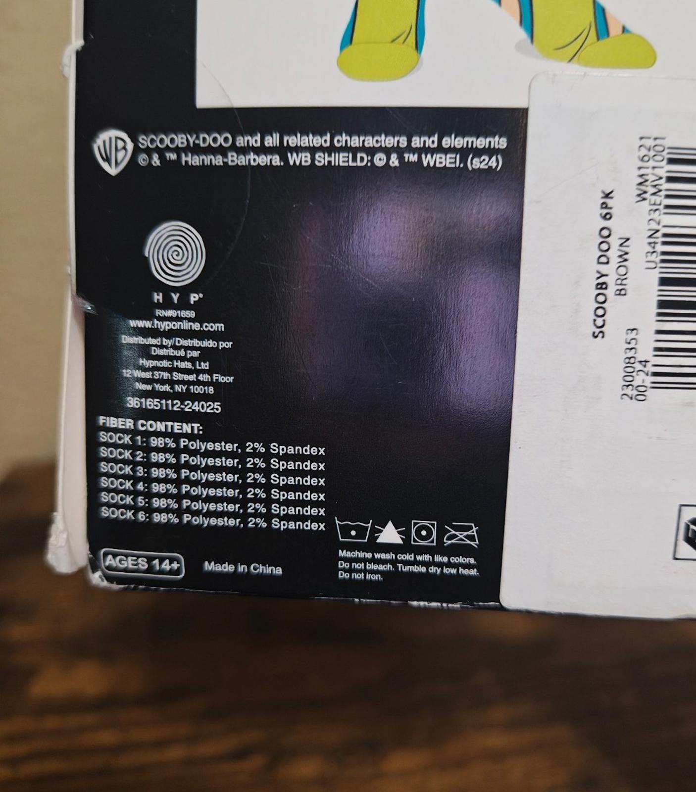 Colorful Scooby-Doo Men's Crew Socks, 6-Pack Fits Shoe Size 8-12 New In Box. Box Does Show Wear.