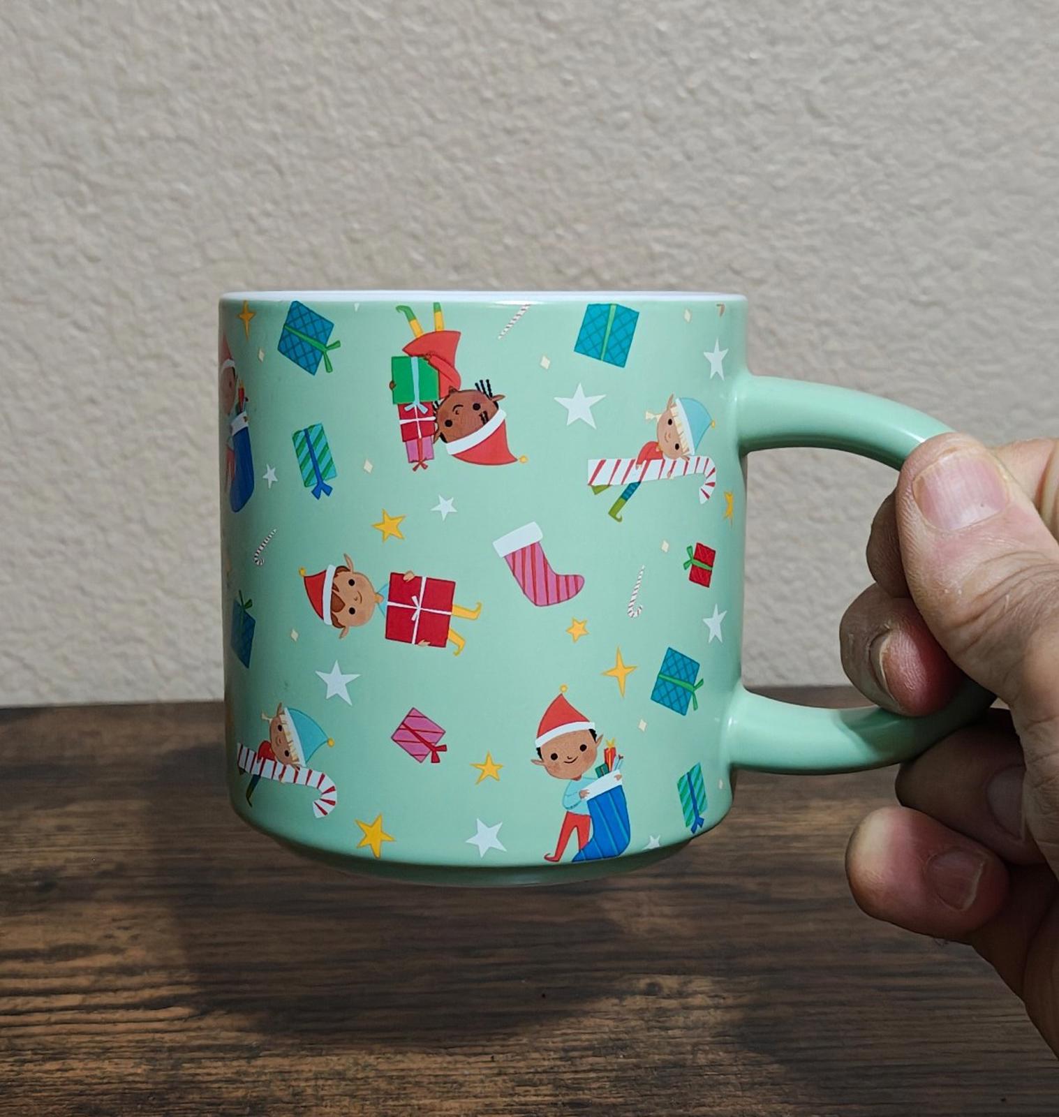 Sip your favorite beverages in festive style with the 18-Ounce Ebony Glenn Christmas Stoneware Mug from Wondershop™. Showcasing a design by illustrator Ebony Glenn, this Christmas mug is covered with gifts, candy canes, stockings and elves for a beautiful look. This stoneware mug is suitable for hot or cold beverages, and also it is dishwasher and microwave safe for quick cleaning and reheating of beverages.
