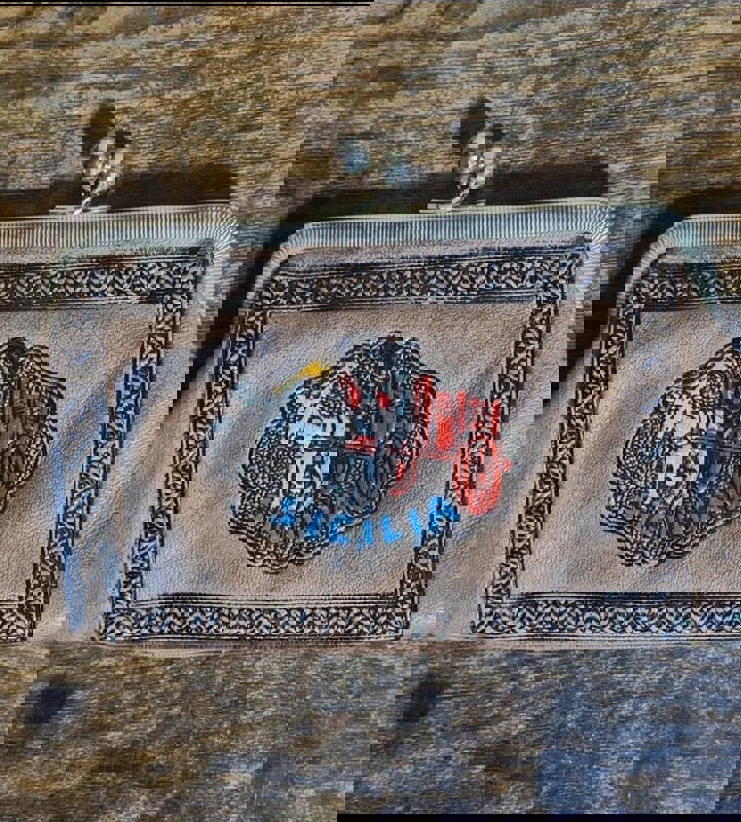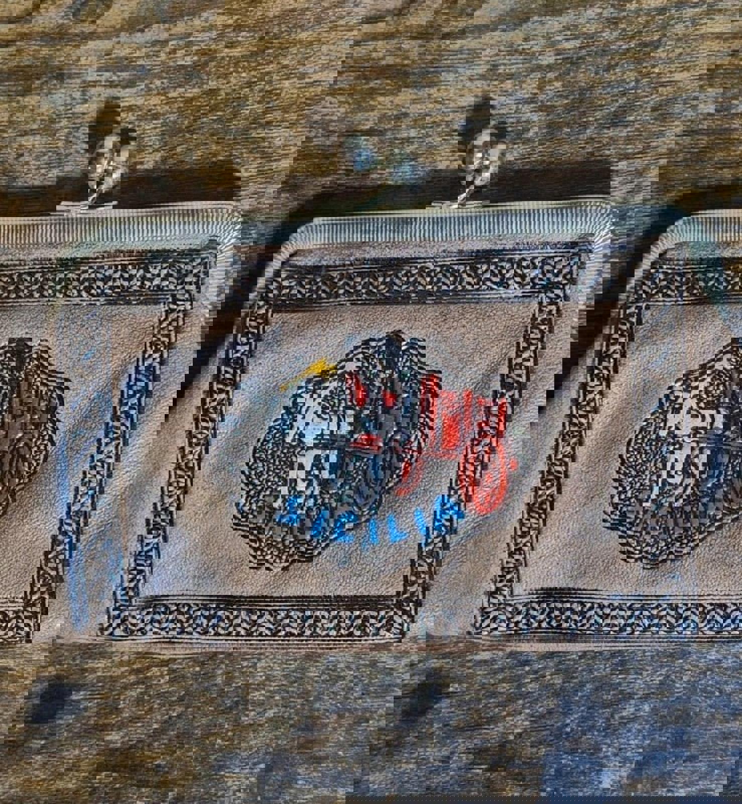 Great Looking Vintage Sicilia/Sicily Tan Leather Embossed Coin Purse Wallet.