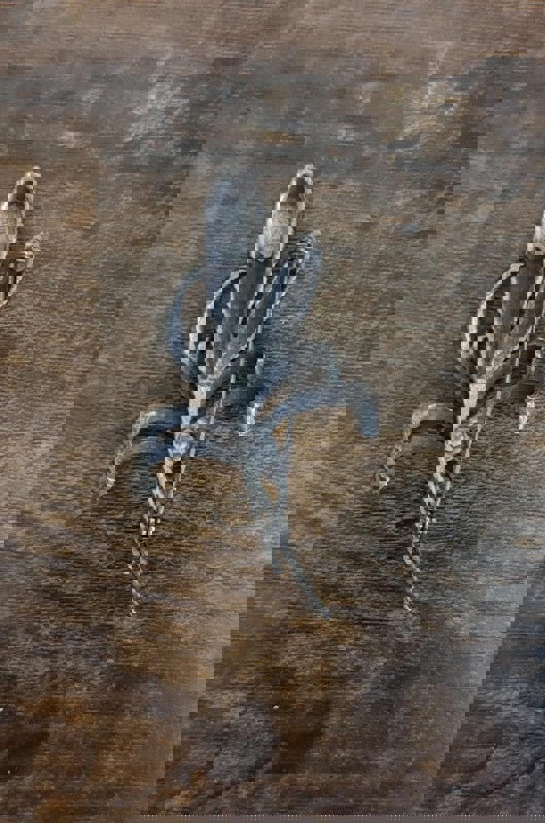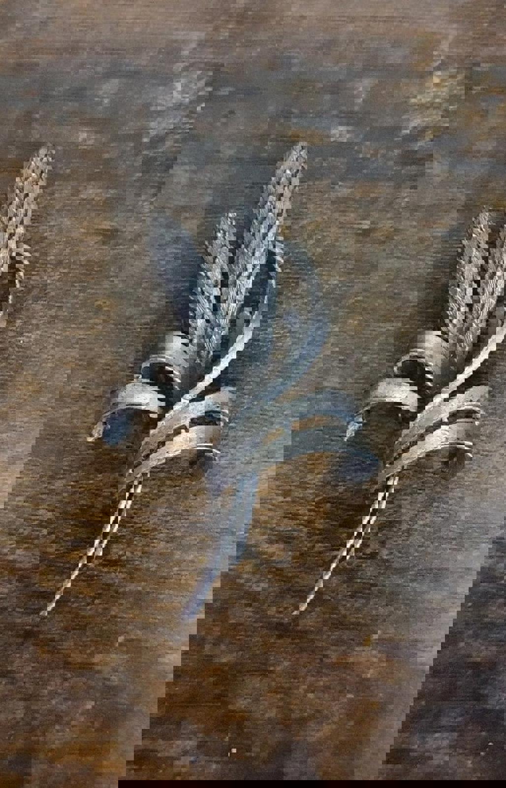 This brooch from Pastelli features a silver tone Hyacinth Flower. The textured blooms are rendered in a matte finish, while the swooping, curling stem & leaves have a high gloss. Metal shaped into an abstracted floral spray, the two textured petals feature a finely detailed, scale-like finish. The combination of finishes & attention to detail give this monochromatic brooch depth & visual interest.