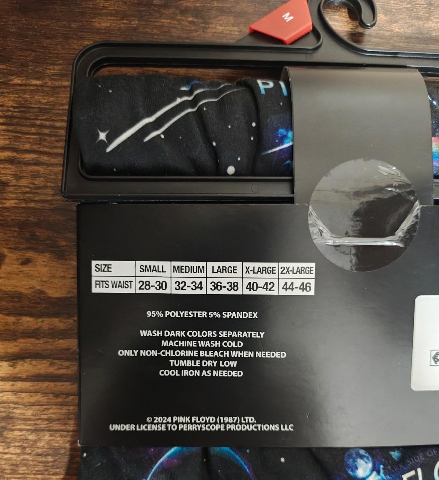 Experience the comfort of Pink Floyd with these Men's Sleep Pants in size M. The black pajama pants feature a graphic print of the iconic band and are made of a soft blend of polyester and spandex. The drawstring closure and button fly add to the convenience of these pants, while the side pockets provide extra storage. These pants are officially licensed and perfect for any Pink Floyd fan. Care instructions include machine washing.