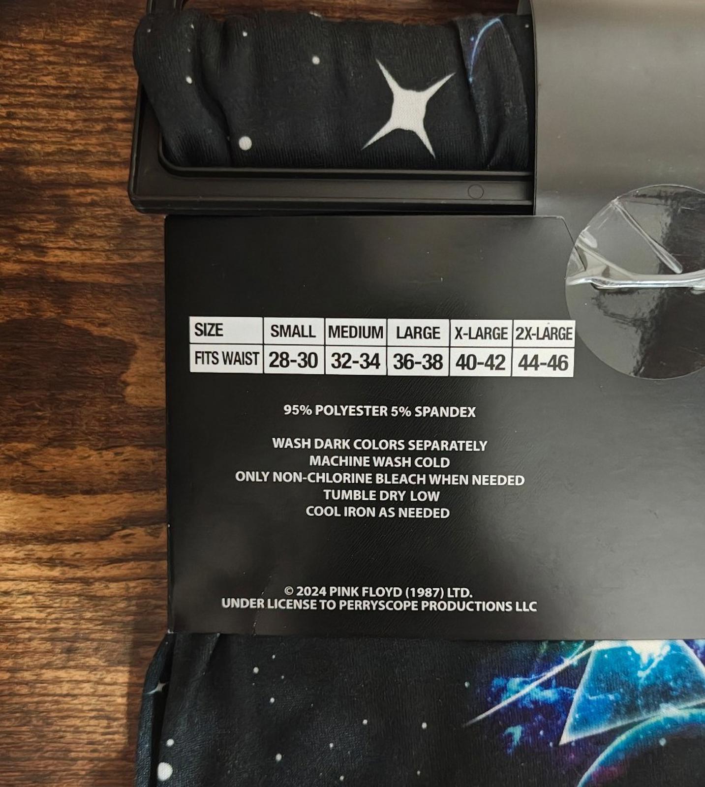 Experience the comfort of Pink Floyd with these Men's Sleep Pants in size XXL. The black pajama pants feature a graphic print of the iconic band and are made of a soft blend of polyester and spandex. The drawstring closure and button fly add to the convenience of these pants, while the side pockets provide extra storage. These pants are officially licensed and perfect for any Pink Floyd fan. Care instructions include machine washing.