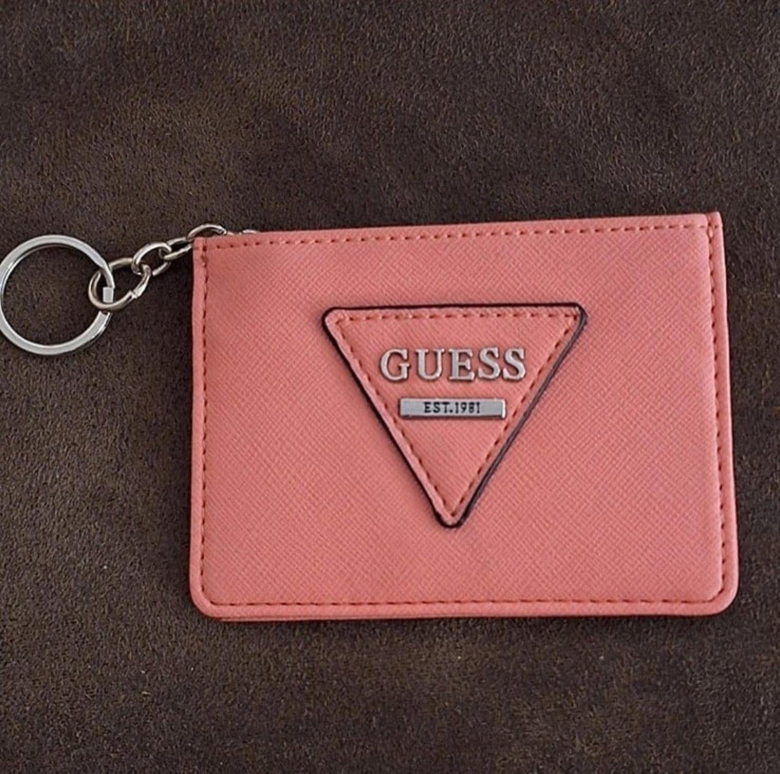 Pretty Pink Guess Faux Leather Wallet/Clutch Pouch/Card Holder/Coin Purse Keychain/Keyring is in Great Condition.